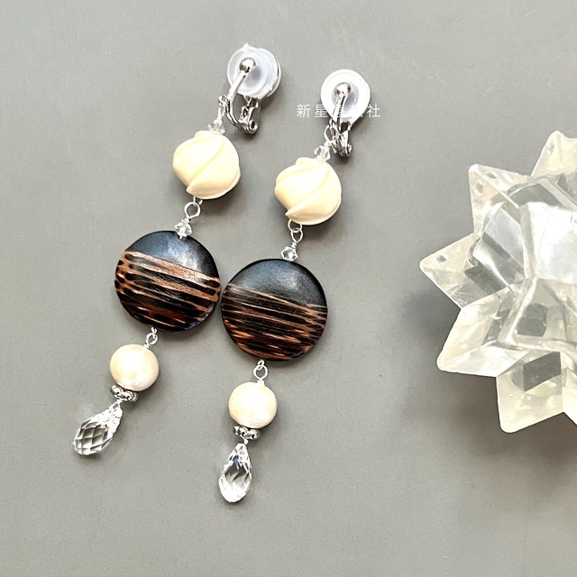 イベント参加中、前後は発送スケジュールに遅延がある場合がございます こちらのお知らせをご確認の上、ご注文ください https://shinse.thebase.in/items/52641316 「さみしいなにかをかく」は、診断メーカーから毎日ランダムに排出されるお題に添って作られた、言葉から産まれるすこし不思議なアクセサリーです。 お題のフレーズと、アクセサリー、そして短い文章によって完結します。 毎日日替わりの一点ものアクセサリーです。再入荷はなし。 一期一会の出会いをお楽しみください。 新星急報社さんは問題が一つ解決した夜、ビルの白々とした窓のない階段でちいさな誤解のはずだったことの話をしてください。 #さみしいなにかをかく #shindanmaker https://shindanmaker.com/595943 「ただの行き違いといえばそうだった。この階段を昇っているときに、エレベーターで降りた人とすれ違わないような、そんな些細な。それを解決するまで長い時間がかかってしまった。今日で一区切りではあるが、完全な解決というのはまだ遠いような。生きるというのはたしかに、こんなことの繰り返しで、わかってはいるけれど。」 段差を思わせる彫刻のある ラクト樹脂のビーズと 異素材の組み合わせのラインが 目を惹く、木、樹脂張り合わせ素材 ユニークなビーズで、静かな一瞬を描いたイヤリングです。 ●使用部材 合成人工樹脂(ラクト)、綿、ガラス(オーストリア製)、木素材 金属素材:メッキ(シルバー色) 一般的にアクセサリーに使用されるものです。 イヤリング部 シルバー925/ロジウムめっき 日本製の痛みがでにくいパーツを使用しています。 イヤリングの詳細はこちらでご確認くださいませ https://shinse.thebase.in/blog/2025/10/01/215740 ※写真と実物の色味に誤差がある場合がございますので、すべての写真をご確認の上予めご了承ください。 ※写真の小道具は販売品には含まれません、アクセサリーのみをお届けします。 ●このイヤリングはピアス金具へ交換可能です 以下のテンプレートをコピーし、【備考欄】に書き込んでください。 ------------- ピアス金具へ交換希望 ・レバーバックタイプしずく型 ・レバーバックタイプ丸型 ・スタッドタイプ (※ご希望のものを残し、二つを消してください) ------------- ピアス金具詳細説明は以下記事をご覧ください。 https://shinse.thebase.in/blog/2020/07/05/181529 メッキにより金具の開閉が固い場合がございますがご了承くださいませ。 ●チェーン長さ調整 対応不可 ●お送り時の梱包 基本の梱包についてはこちらをご参照ください。 https://shinse.thebase.in/blog/2020/09/09/200253 有料ラッピングも承っておりますのでご検討ください。 シャーレ・https://shinse.thebase.in/items/33611818 ボックス・https://shinse.thebase.in/items/33611845 ご了承ください ●お取り扱い上のご注意 着用時、体質によっては皮膚にかゆみ、かぶれなどの症状が出る場合がございます。 異常を感じた際は直ちに着用を中止し、医療機関へご相談ください。 細かいパーツ、合金素材などを含みます。 乳幼児や愛玩動物の手の届かないところでご着用、保管してください。 水分や汗などはアクセサリーの変色や破損の原因となり さらに自他へ危害を加える可能性がございます。 運動時や家事、入浴などにあたっては着用をお避けになることをおすすめいたします。 またご使用後はやわらかい布などで拭いてから、 直射日光が当たらないところでの保管をおすすめいたします。 また毎日の使用はお勧めしておりません。 詳細はこちらをご一読ください。 https://shinse.thebase.in/blog/2020/09/01/220712 修理につきましては下記条件にてお受けいたします。 新星急報社のアクセサリーはすべて同様の条件で修理します。 https://shinse.thebase.in/blog/2020/09/01/222552 デザインの都合上磨かれていないものや 内外に瑕のある天然素材などを使用している場合がございます。 また、ヴィンテージのパーツなどを使っている場合、 経年劣化や表面に擦れなどがある場合がございます。 フローライト、アパタイトなどは特に脆く、 衝撃で割れやすい石となっております。 またワイヤーなどを使い手作業で構成しており 工業製品ほどの堅牢さはございません。 気になる方はご購入をお控えください。 染色された素材は濡れた状態で使用する、 強い圧力をかけるなどされますと衣服に色移りする可能性がございます。 お取り扱いにはご注意ください。 検索用: 銀 白 茶 黒 クリア