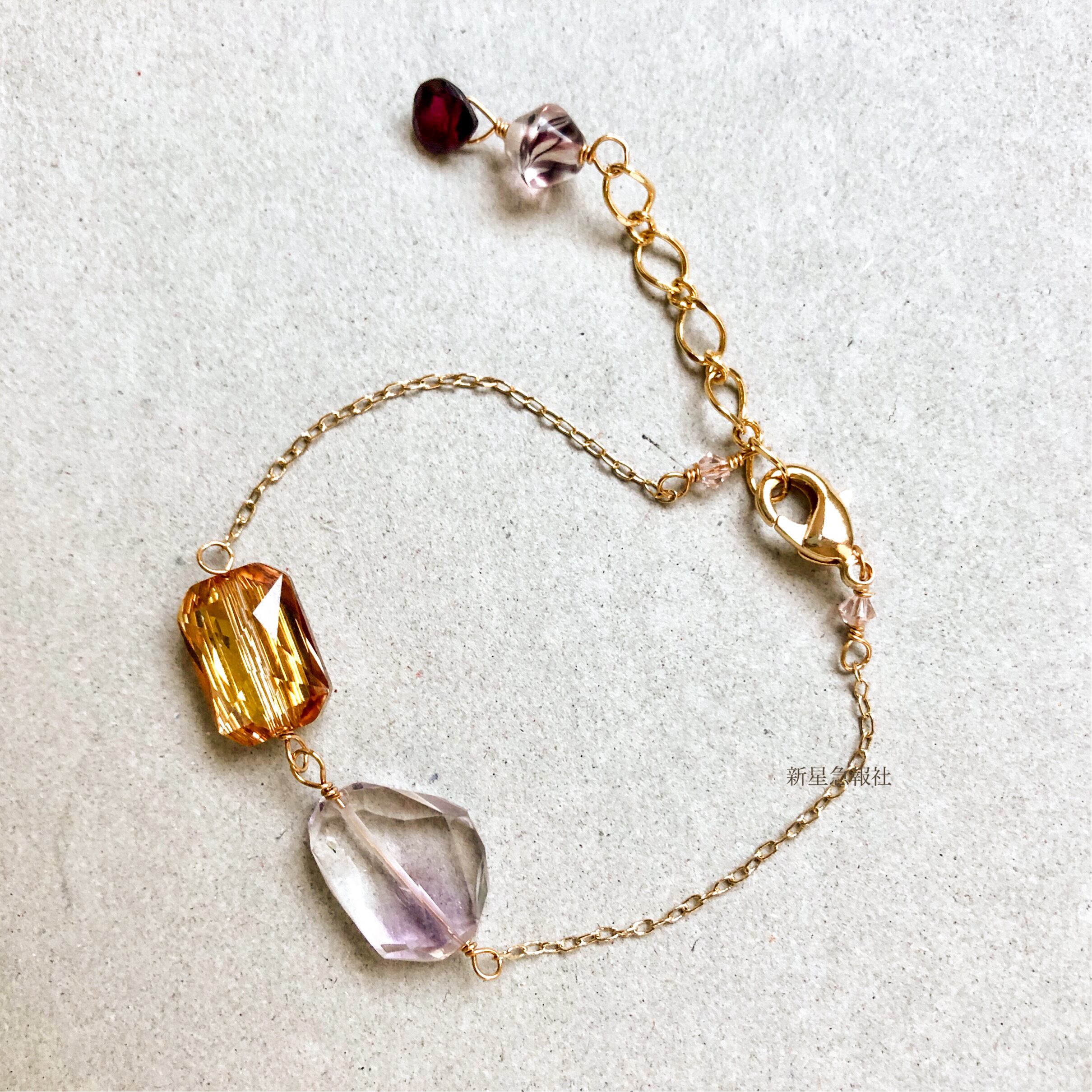 ガラス(一部インドビーズ、フワロフスキー社製)を含みます。