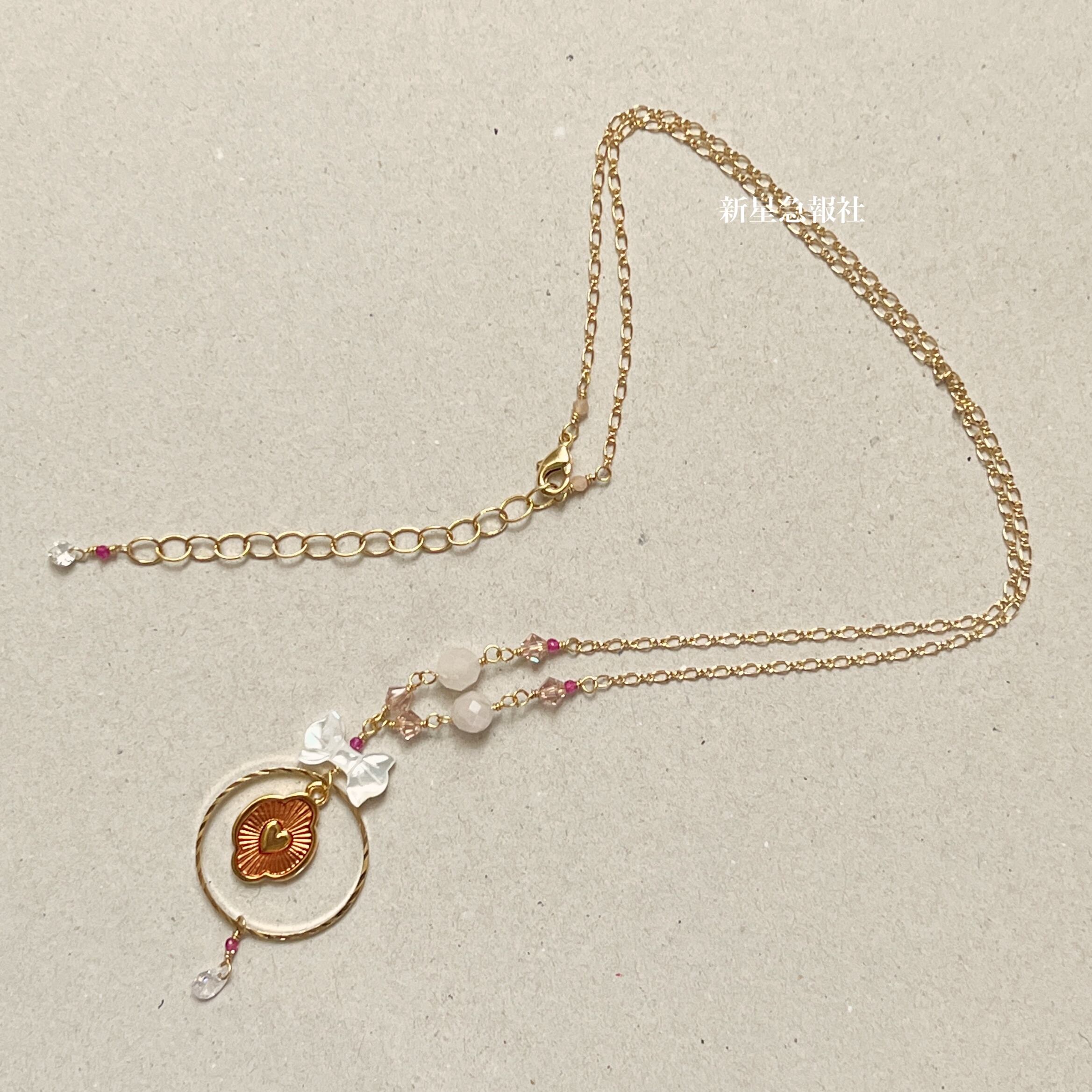 貝素材、ローズクォーツ、ガラス(オーストリア製)