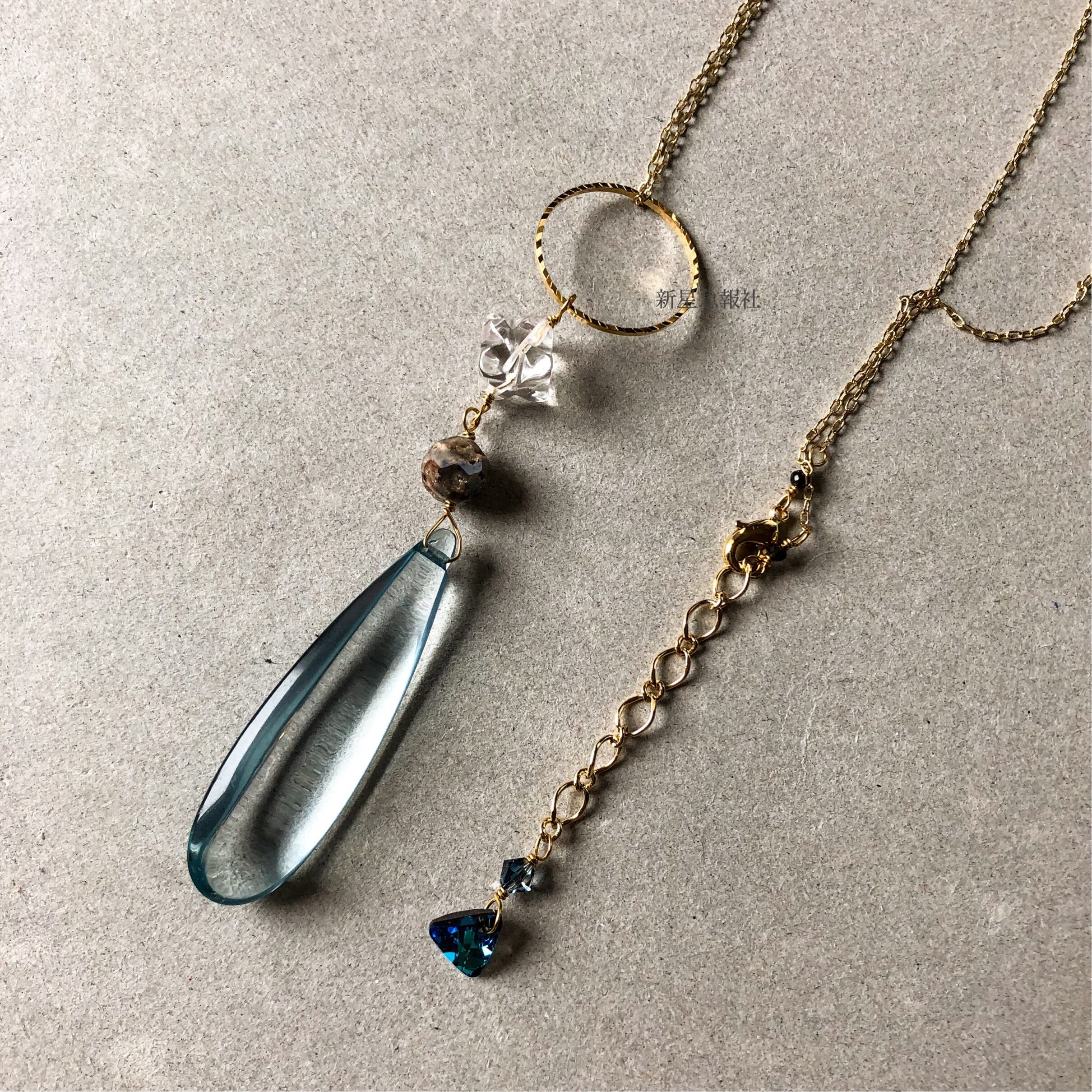 アクセサリーは樹脂素材、水晶、アゲート(ドゥルージータイプ)