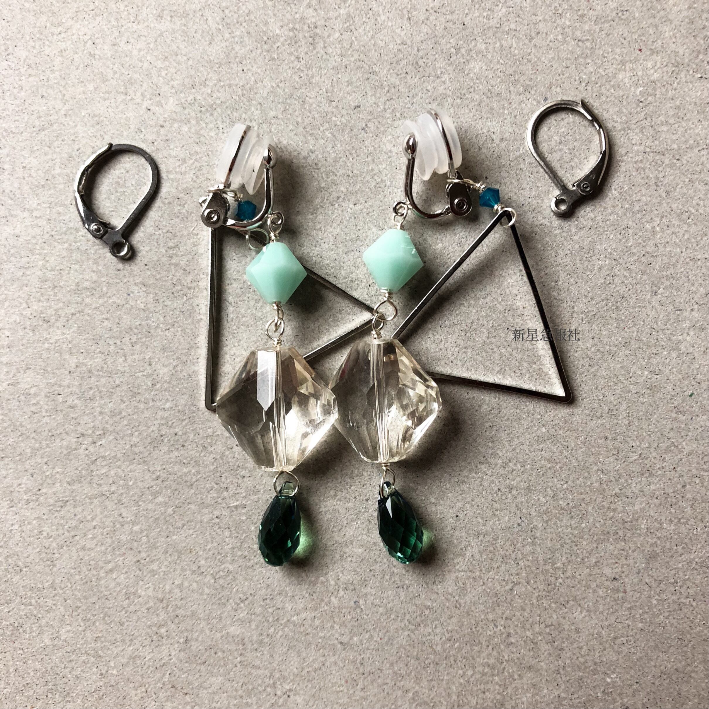 ステンレス素材のレバーバックタイプのピアスに変更可能