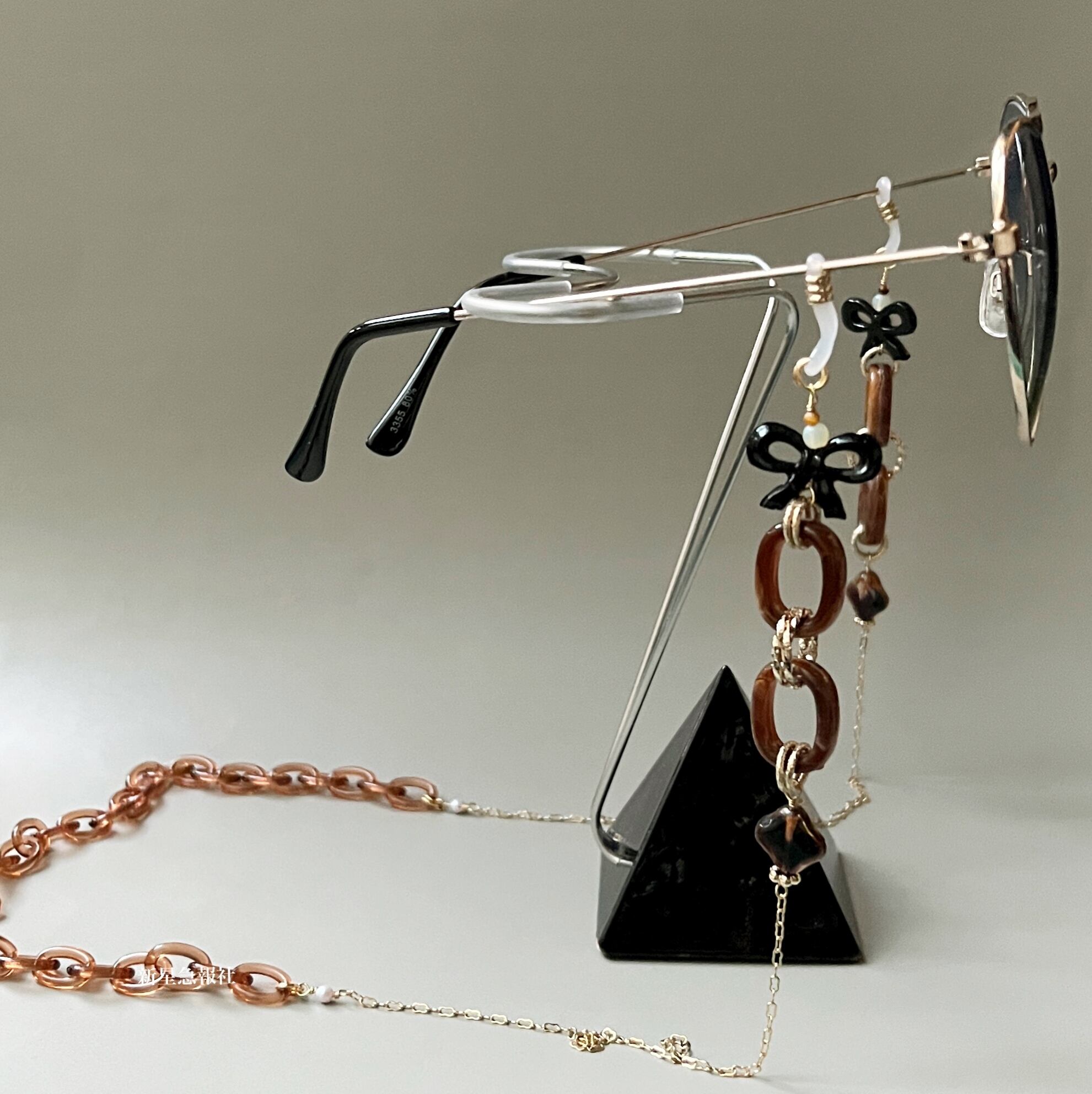 ブラウンのプラスチックチェーンに装飾的な丸カンを組み合わせて