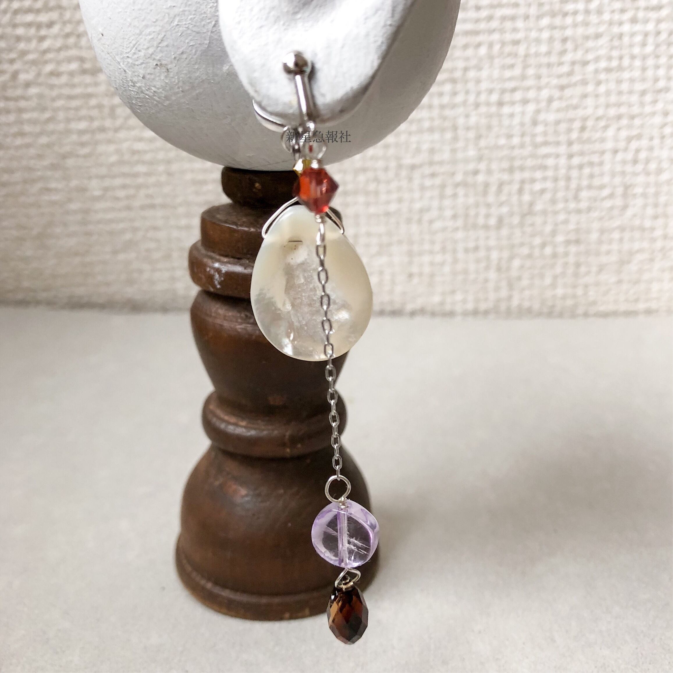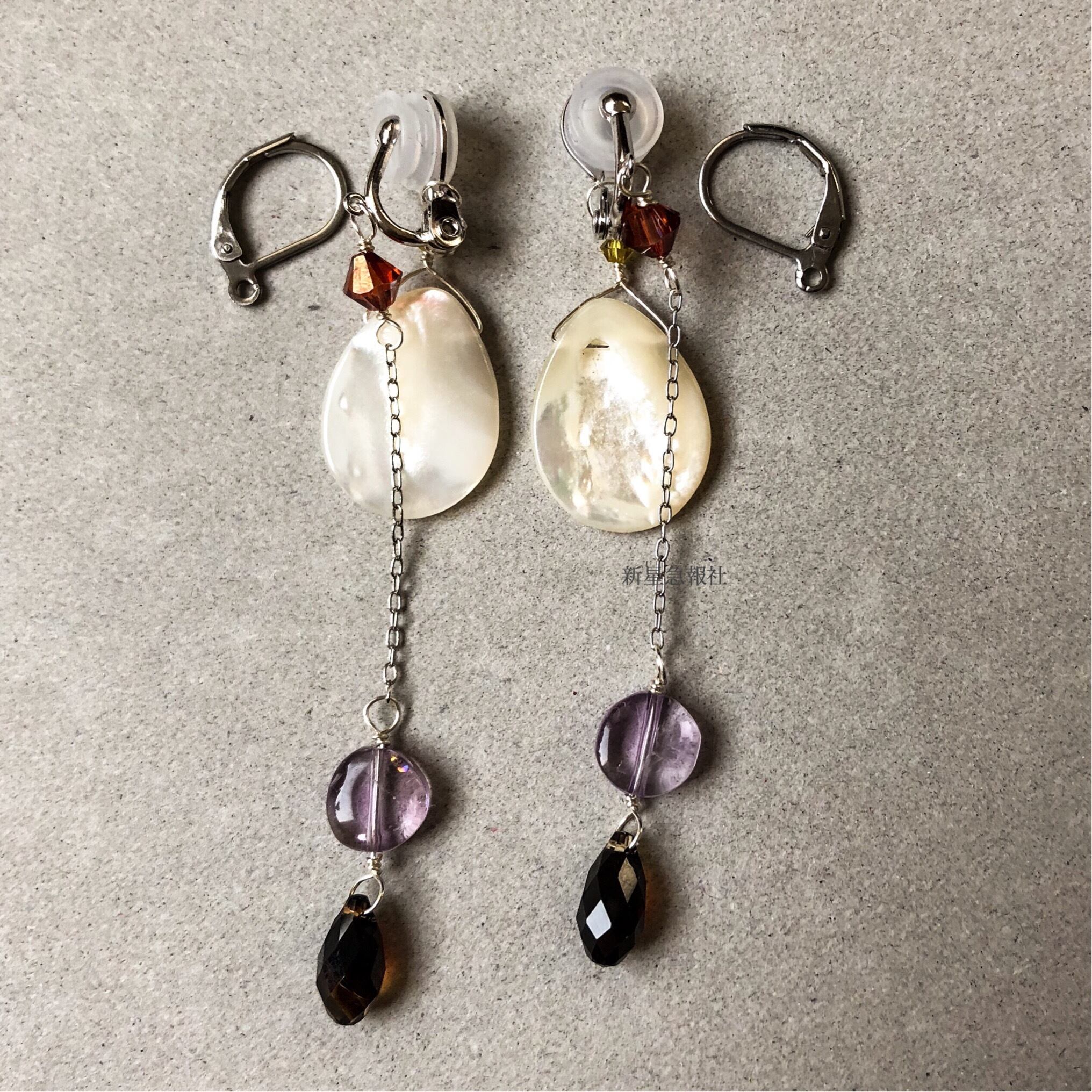 アクセサリーは貝素材、アメジスト、ガラス(スワロフスキー社製)を含みます。