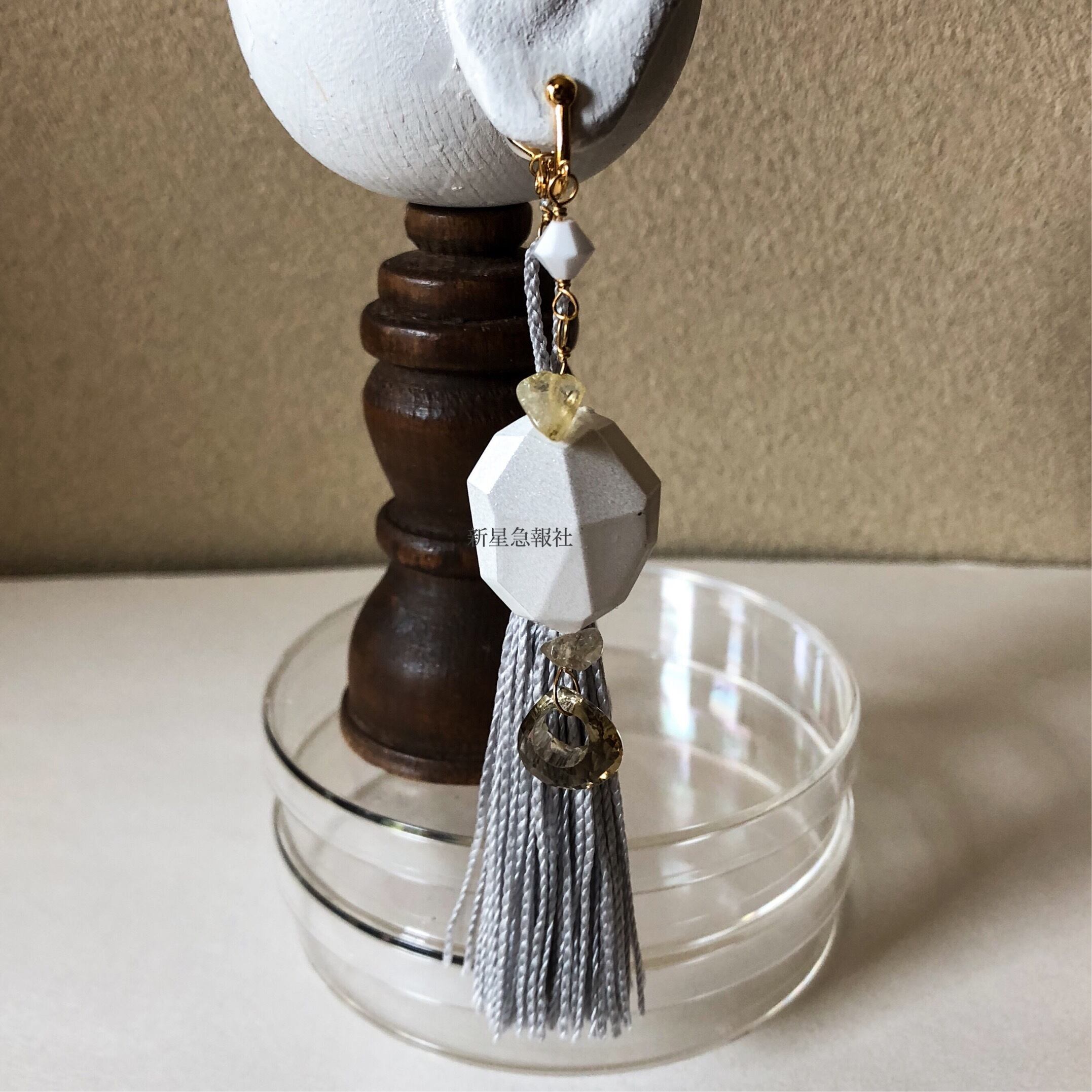 アクセサリーはナイロン、樹脂素材、シトリン、