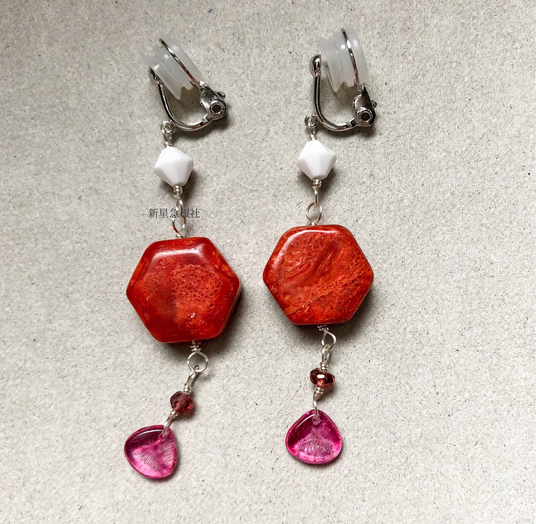 アクセサリーは磯花(樹脂加工)ガーネット、