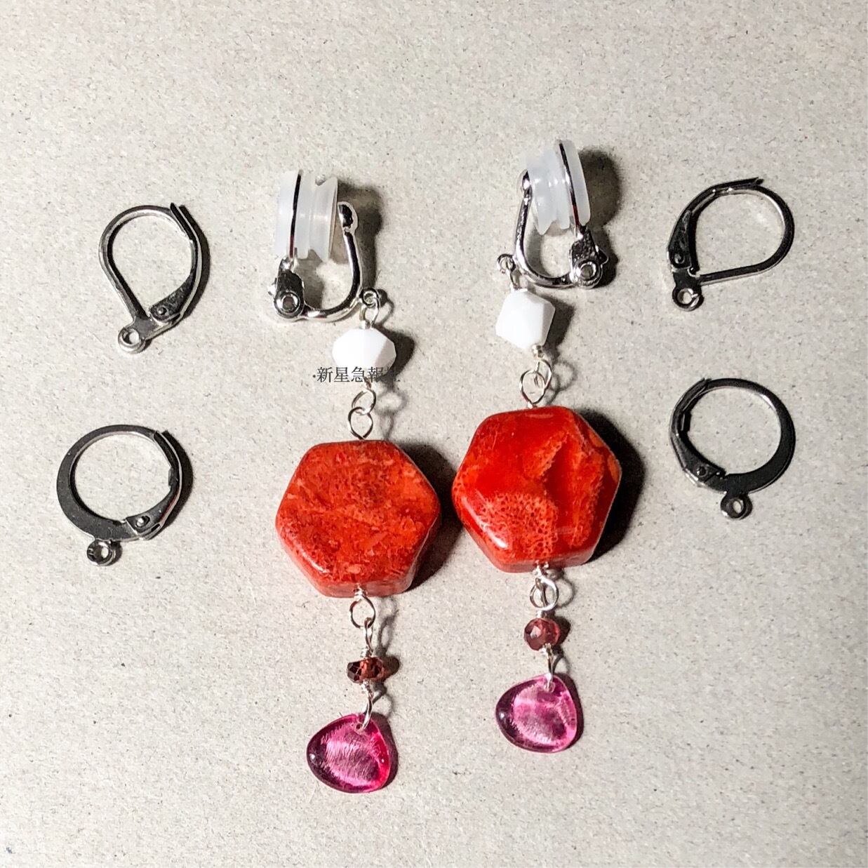 ステンレス素材のレバーバックタイプのピアスに変更可能。