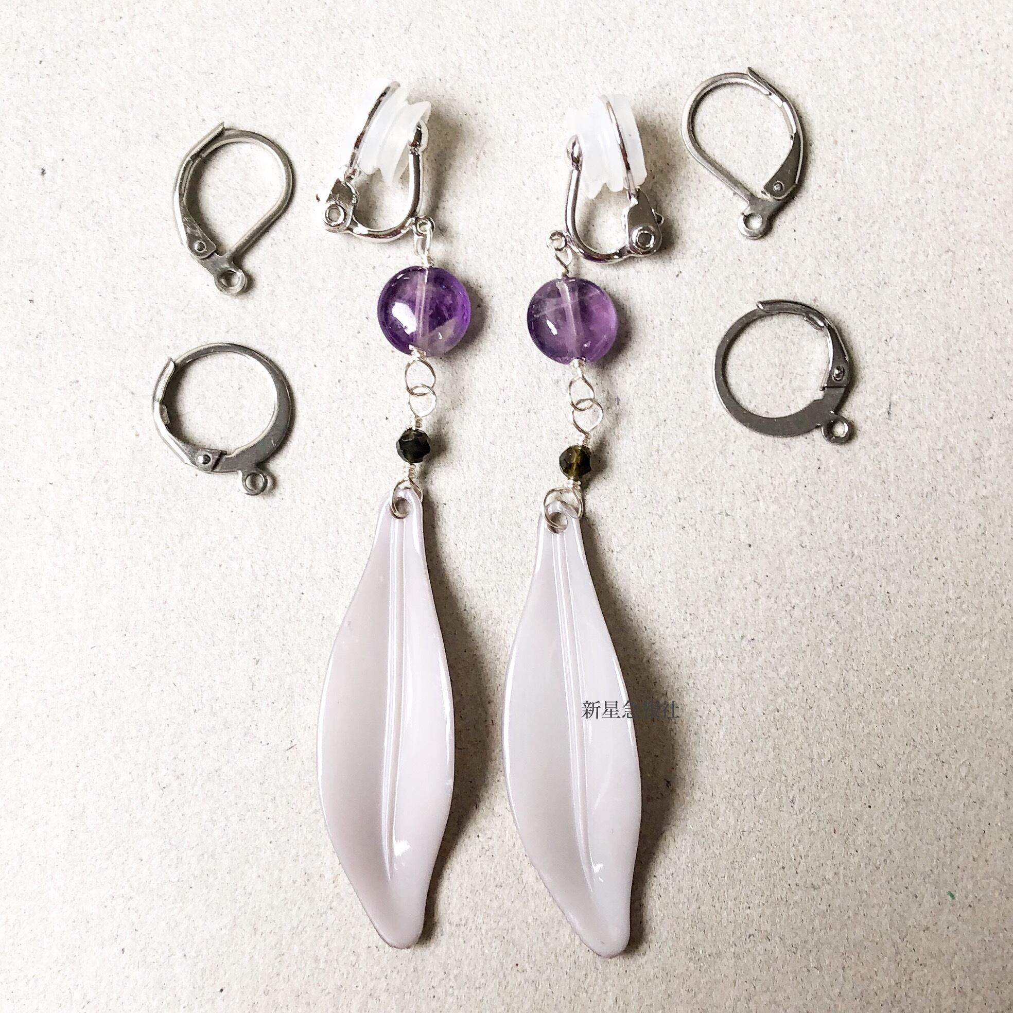 ステンレス素材のレバーバックタイプのピアスに変更可能。