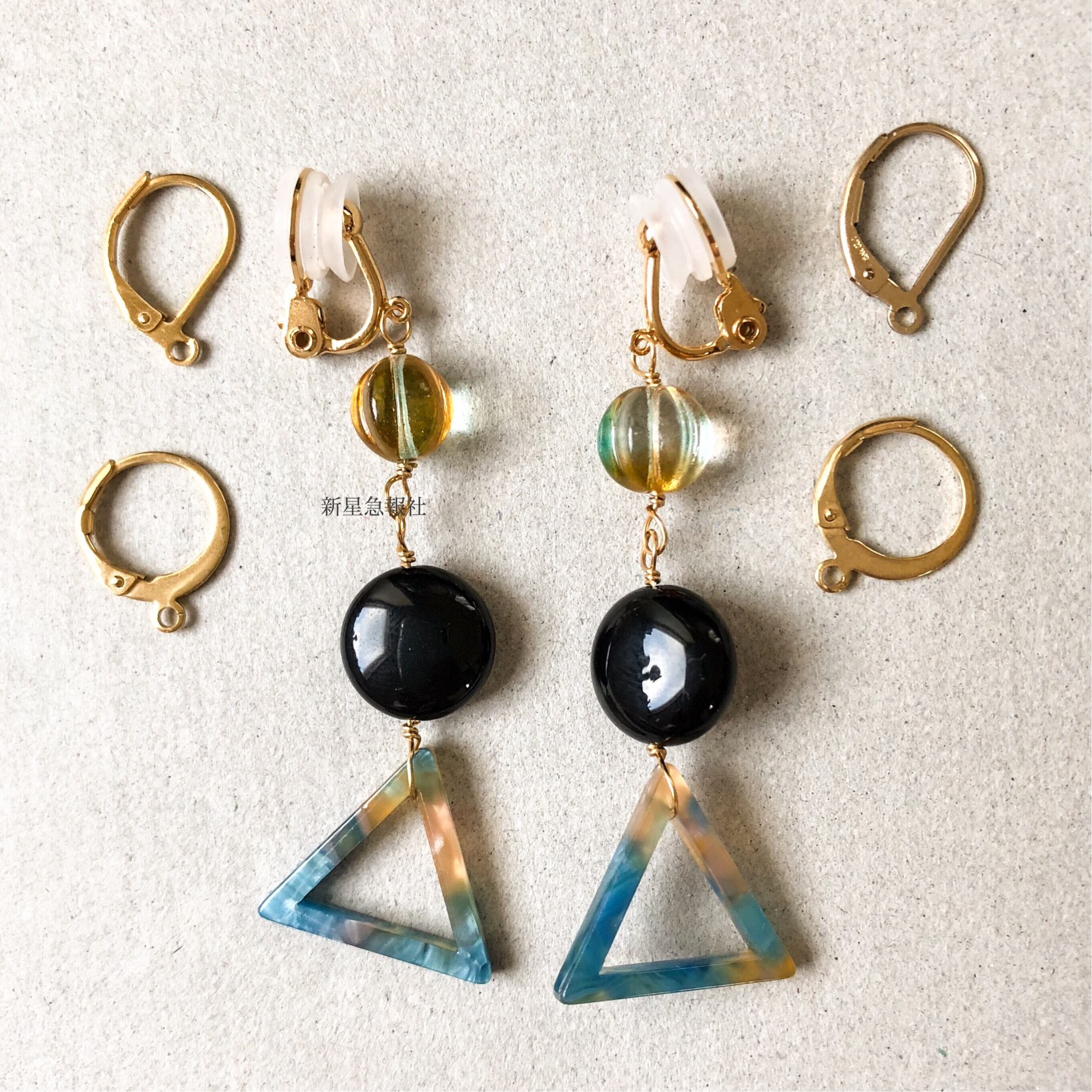 ステンレス・メッキ素材のレバーバックタイプのピアスに変更可能。