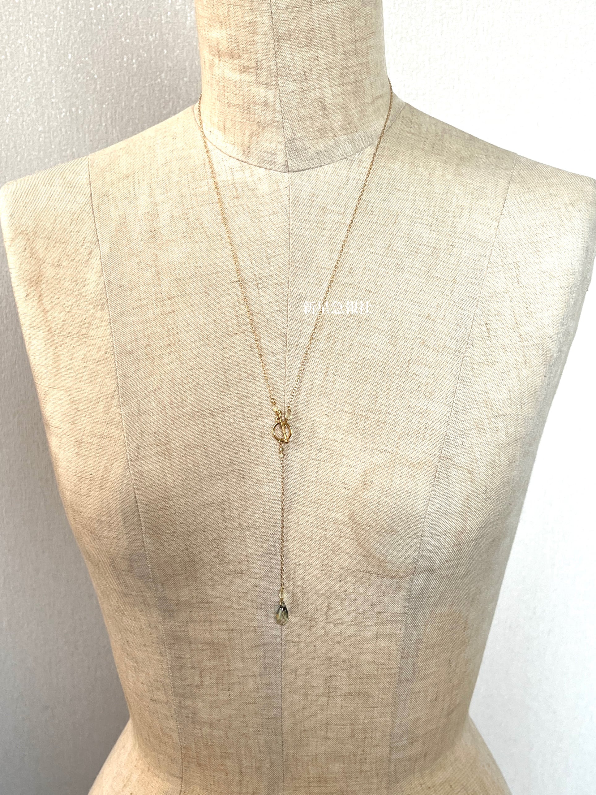 留め具が前につき、そこからチェーンが下がるタイプのネックレス