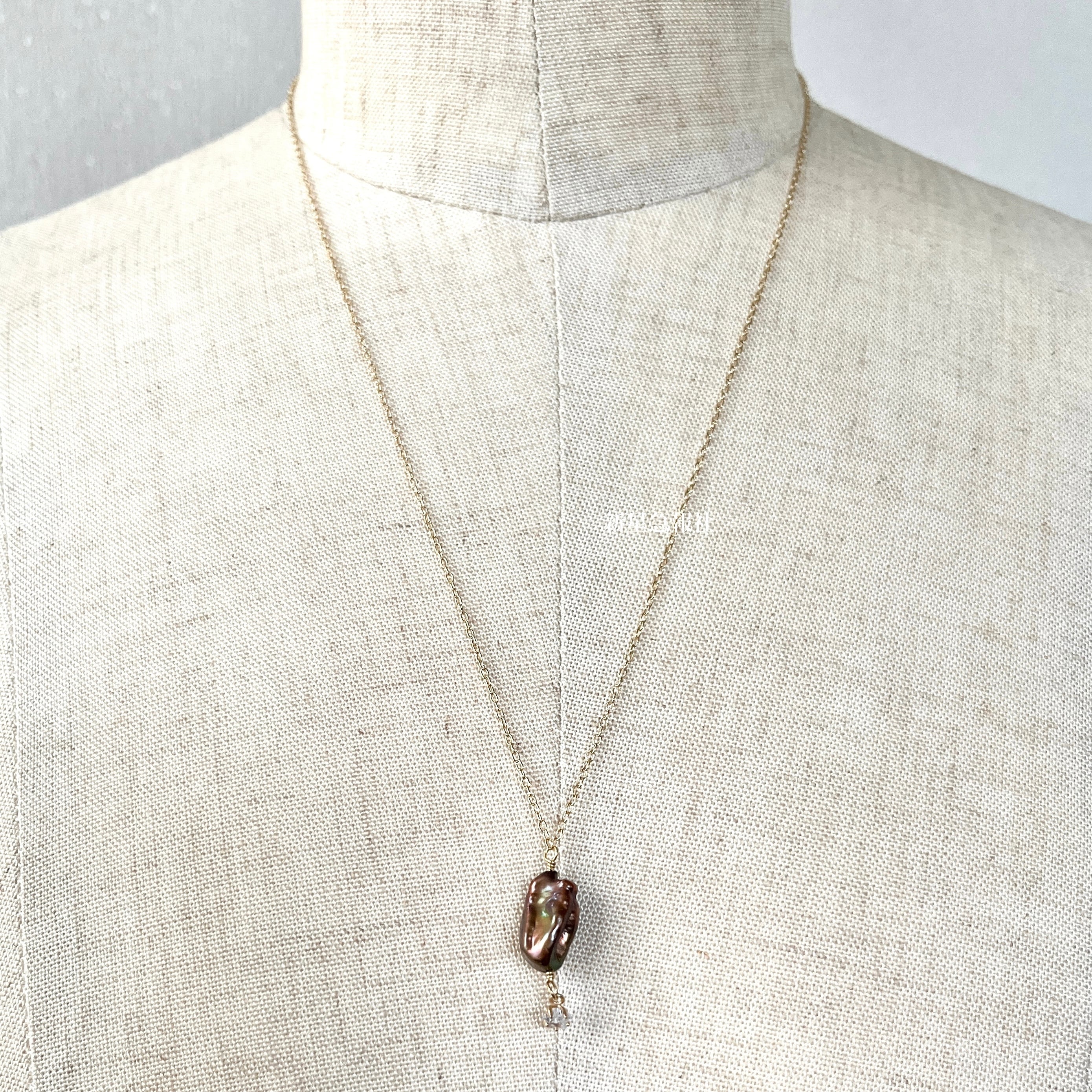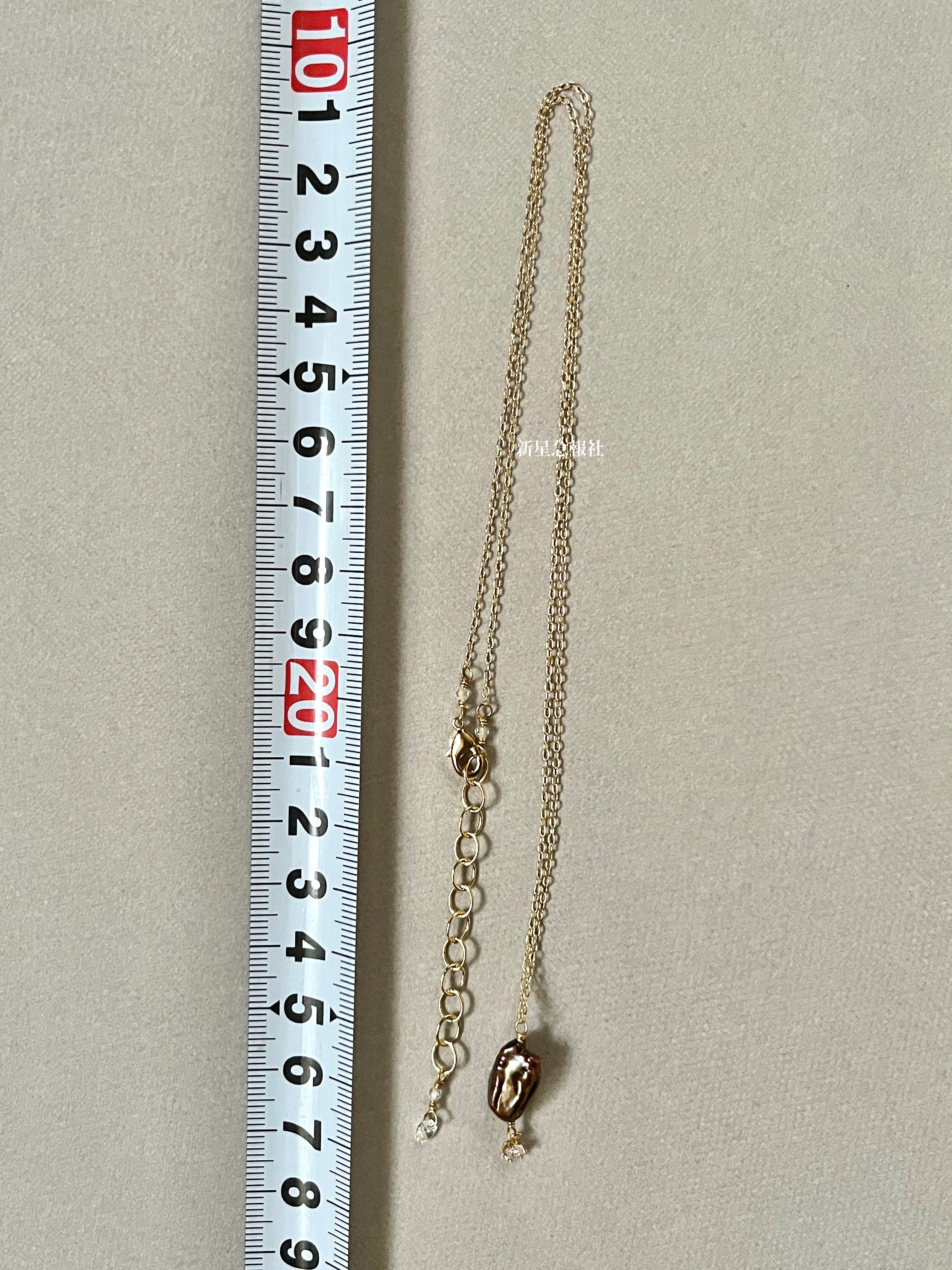 いびつな茶色の淡水真珠を、心臓の形に見立てて