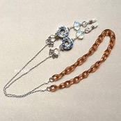 陶器のビーズに、オーロラ加工の施された雲形のガラスビースと
