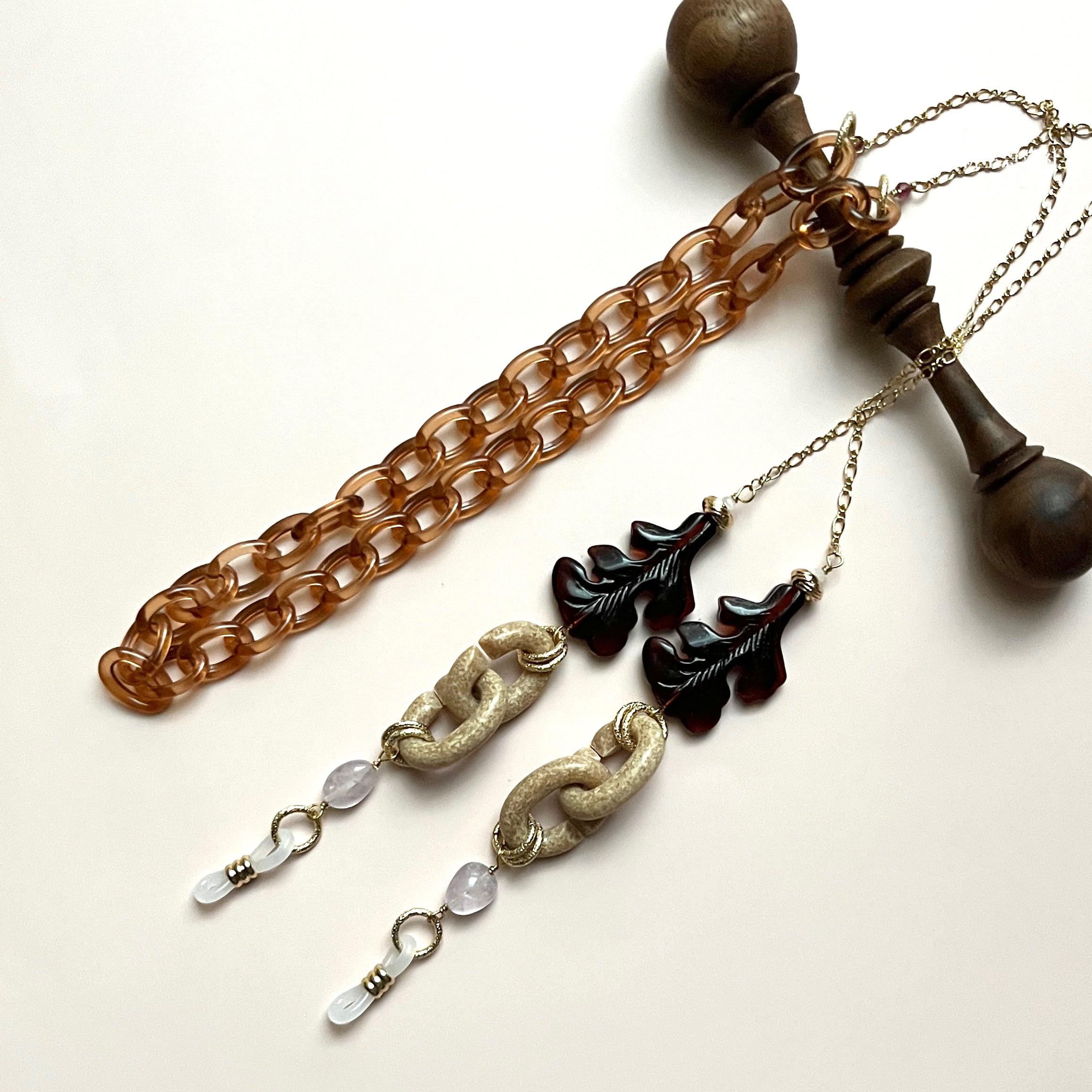 ナチュラルな印象のプラスチックパーツとチェーンが