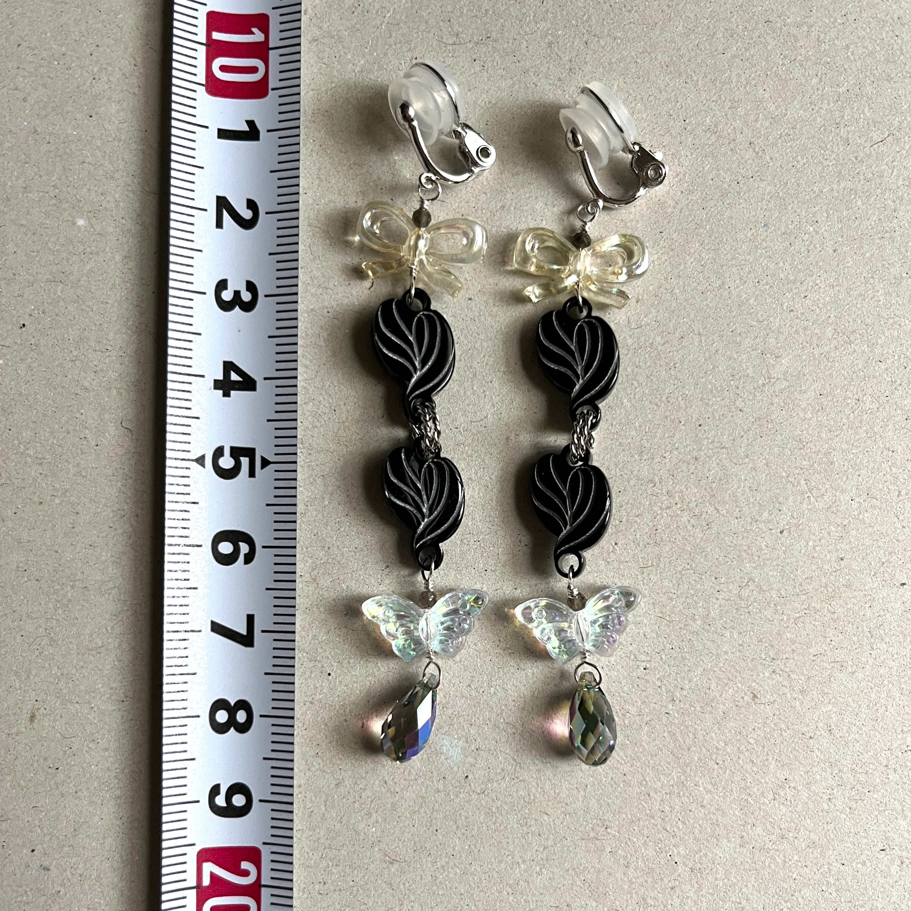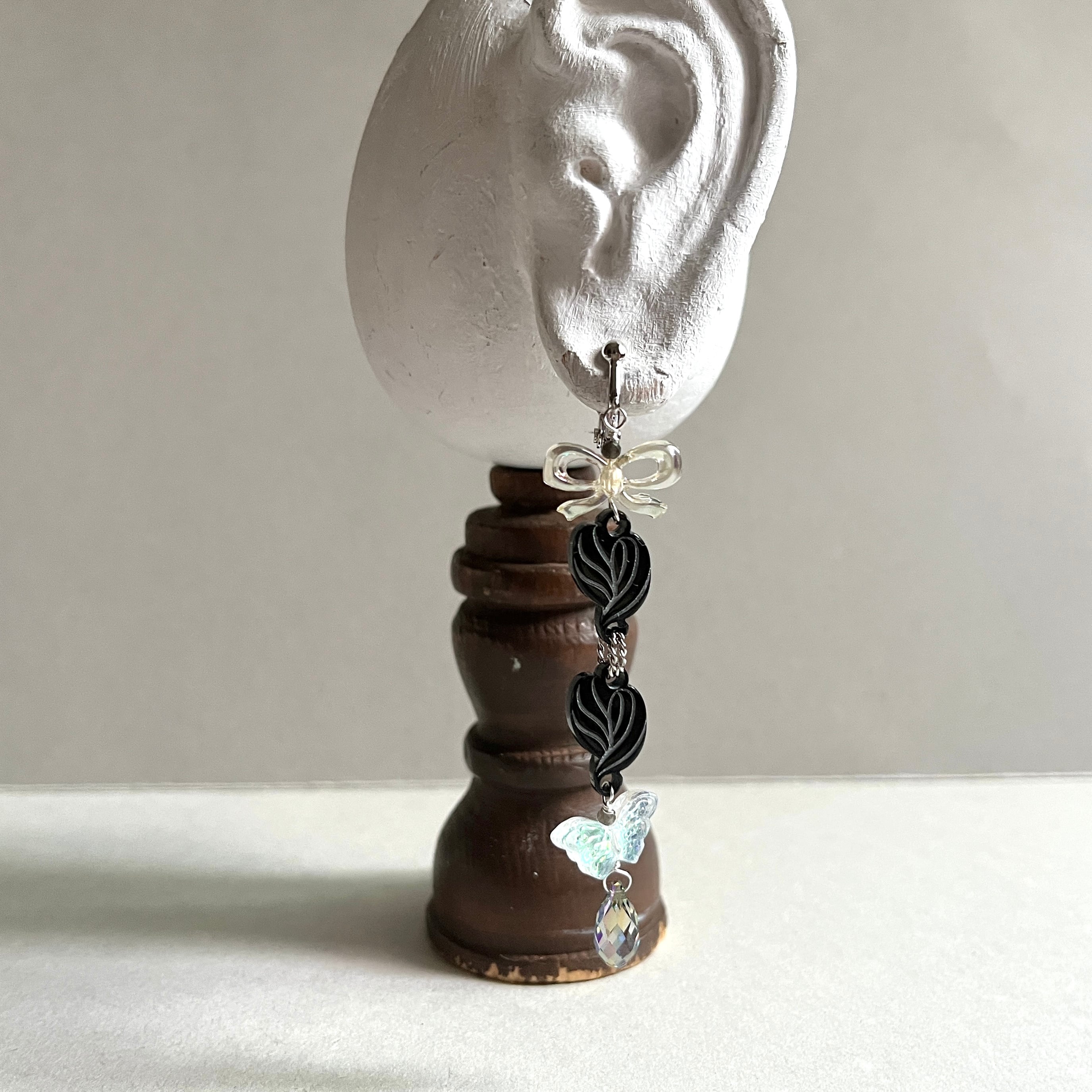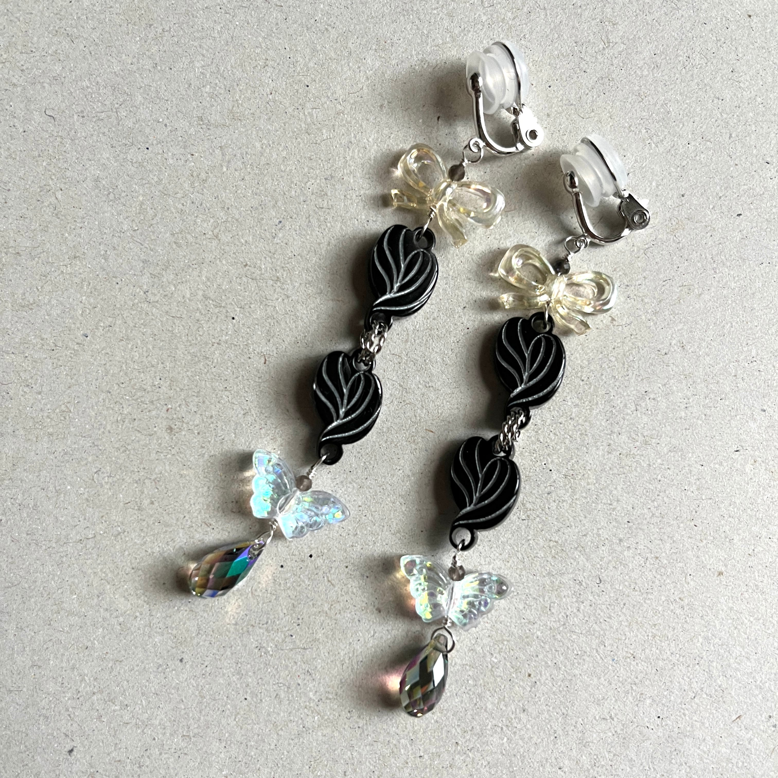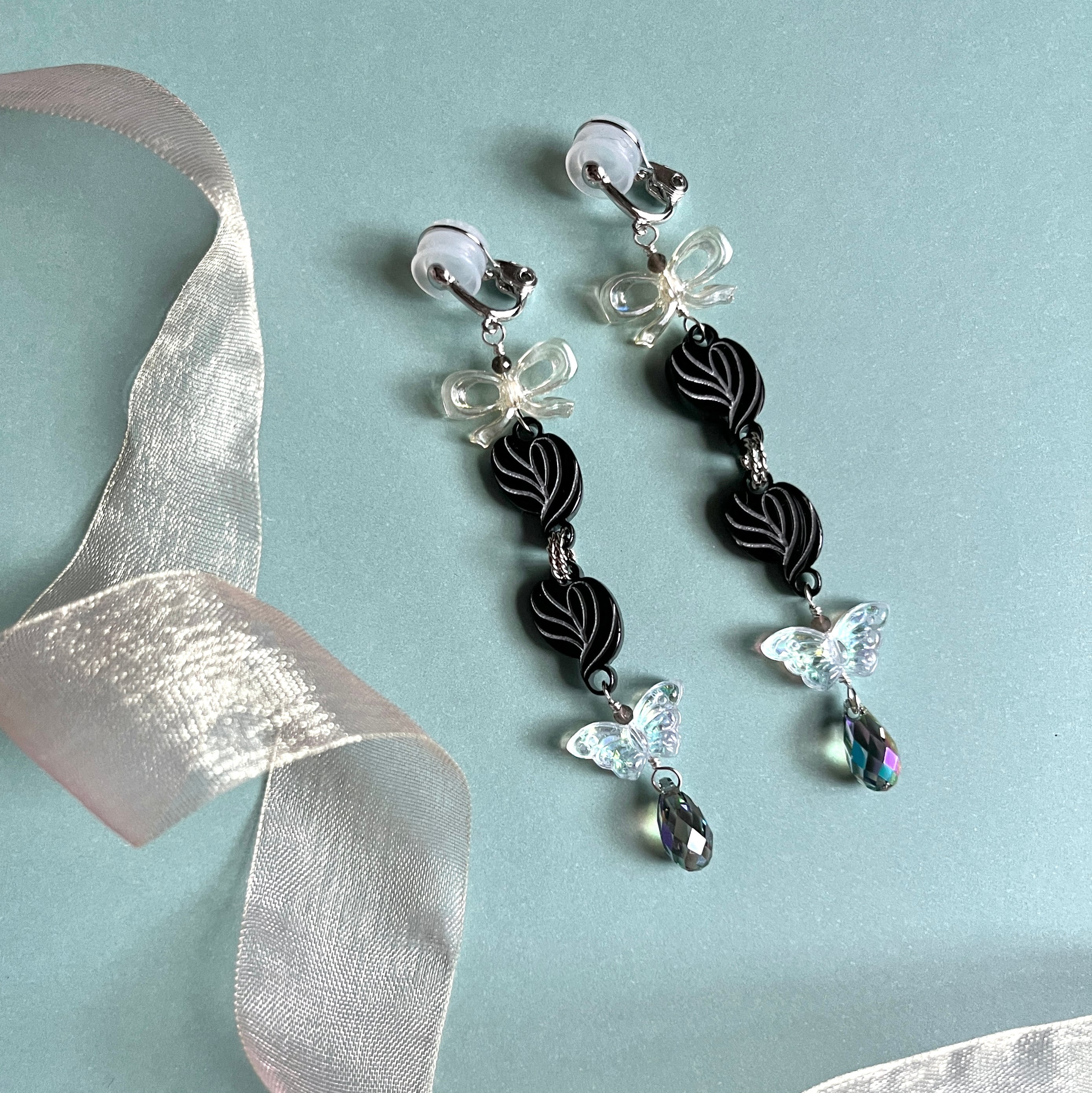 三ツ編魔法使いのイヤリング【黒髪にオーロラの蝶】