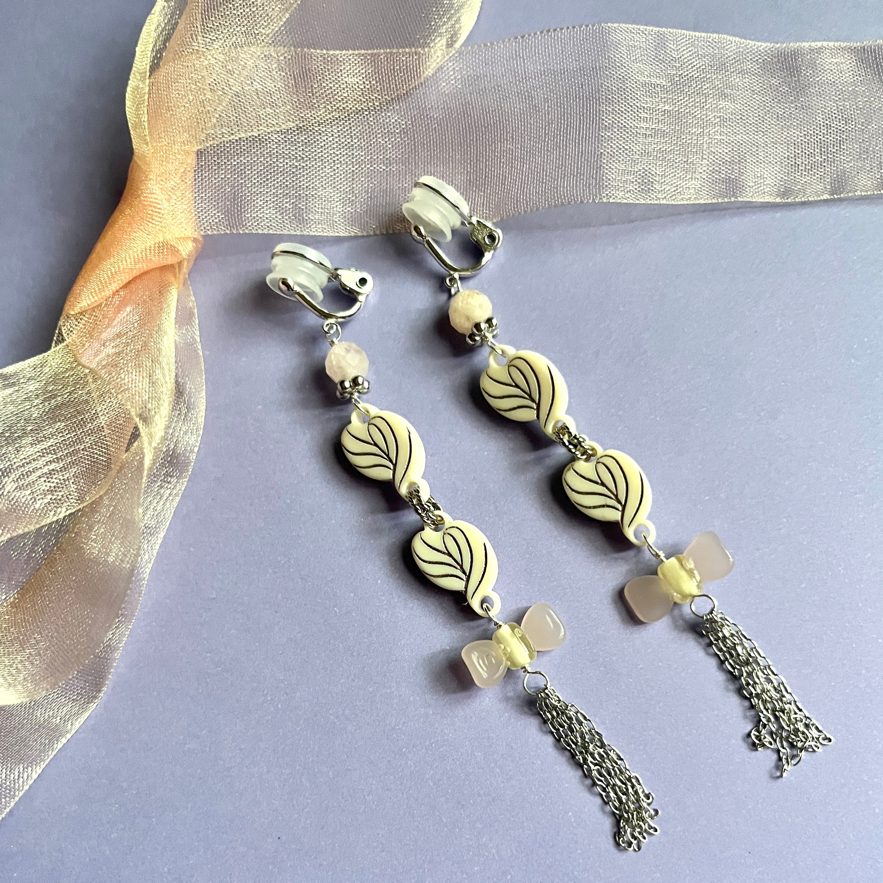 三ツ編魔法使いのイヤリング【白髪に桜色のリボン】
