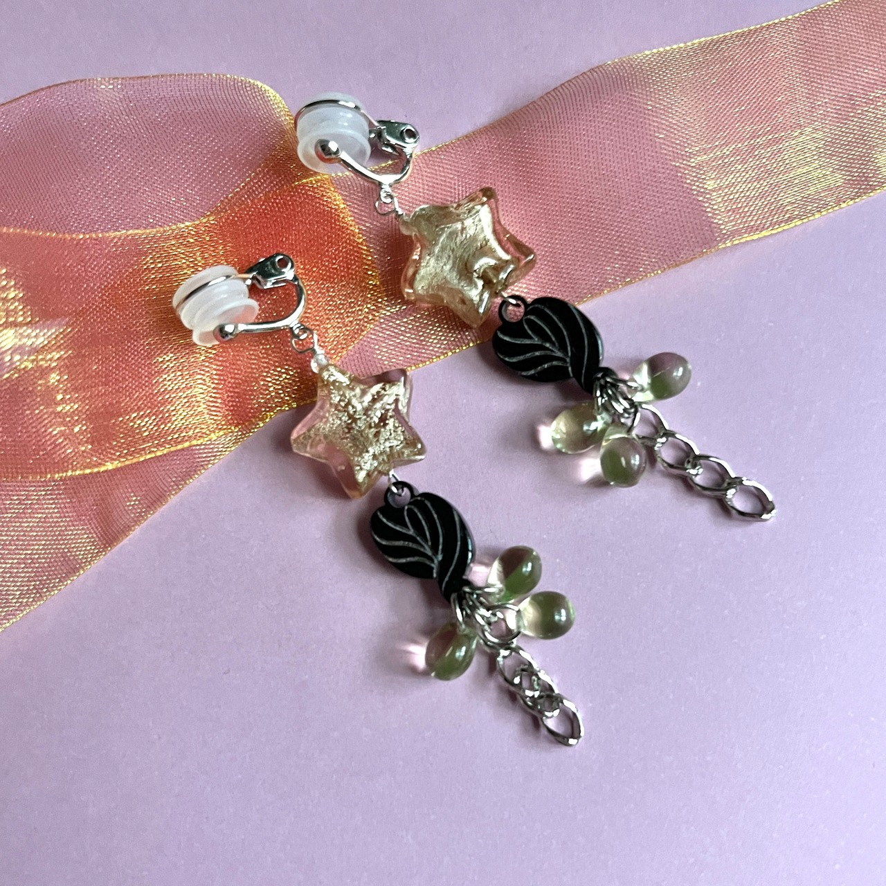 三ツ編魔法使いのイヤリング【黒髪に星】