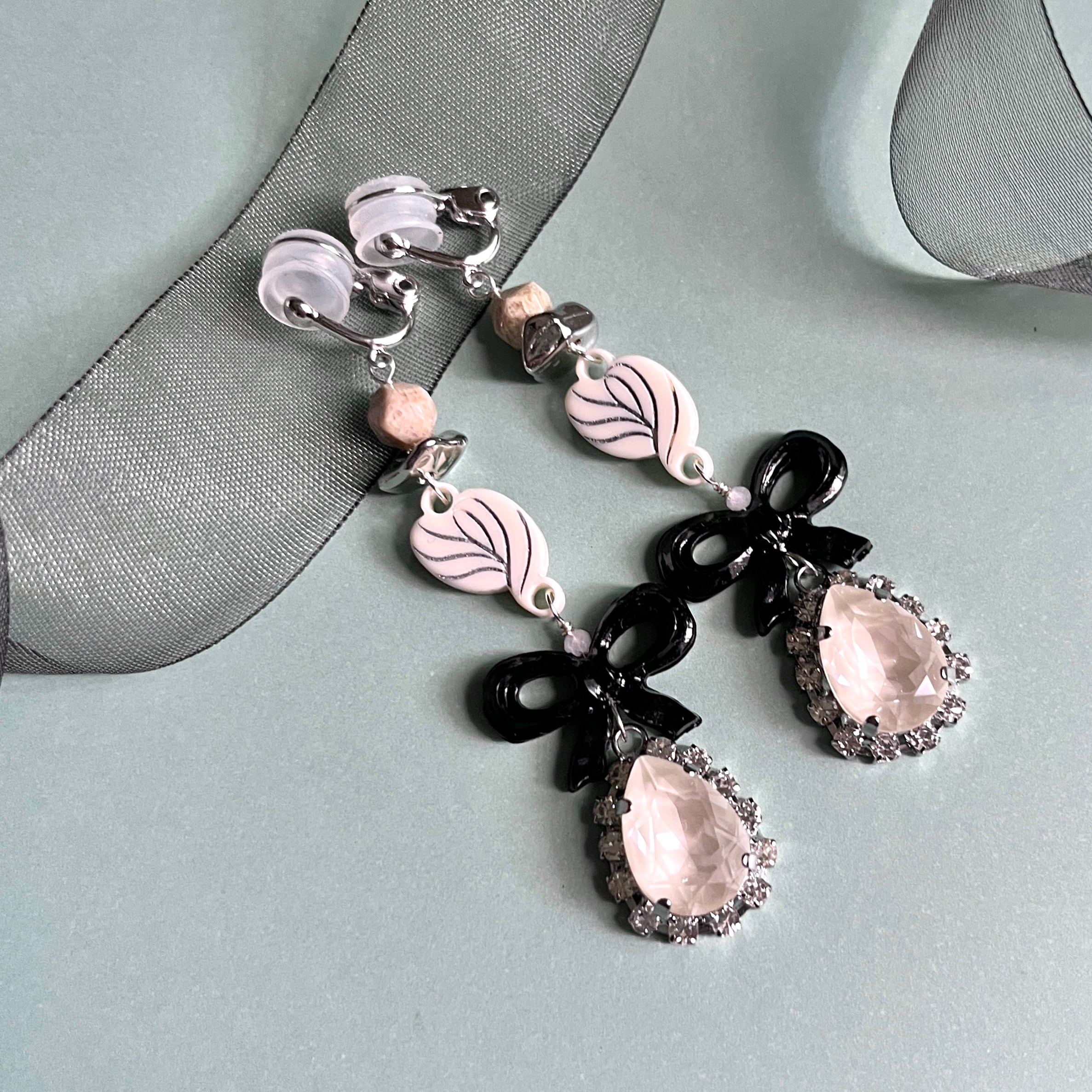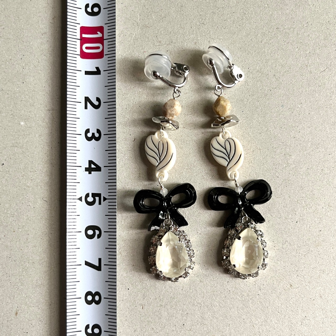 三ツ編魔法使いのイヤリング【白髪に黒いリボン】