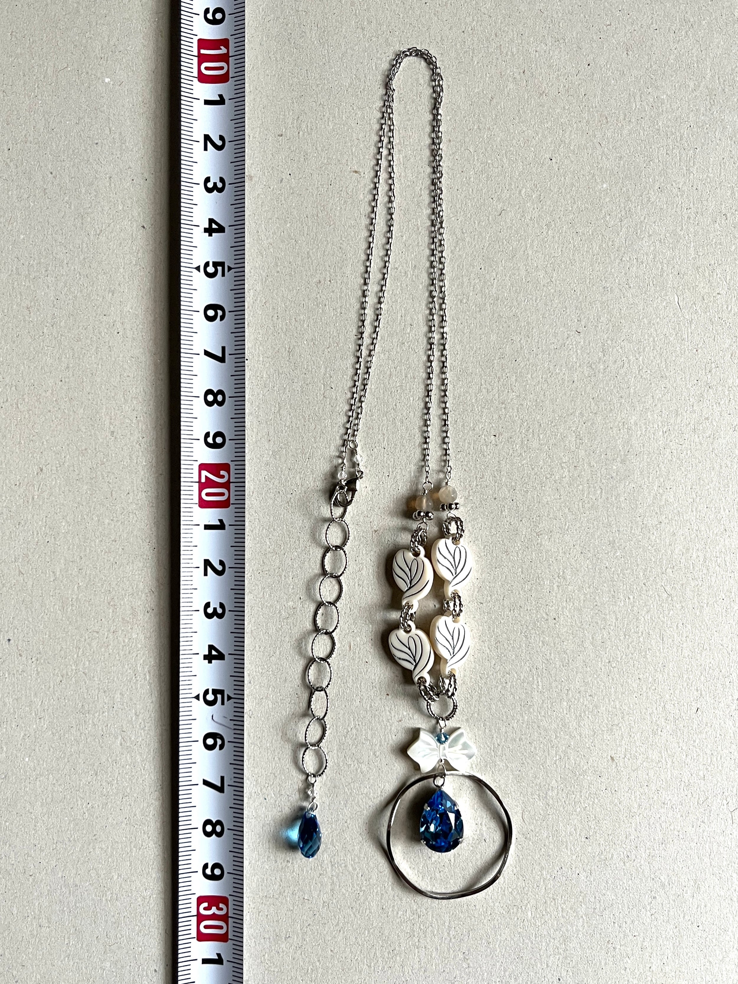 鮮やかな水色のガラスがトップで輝くネックレス