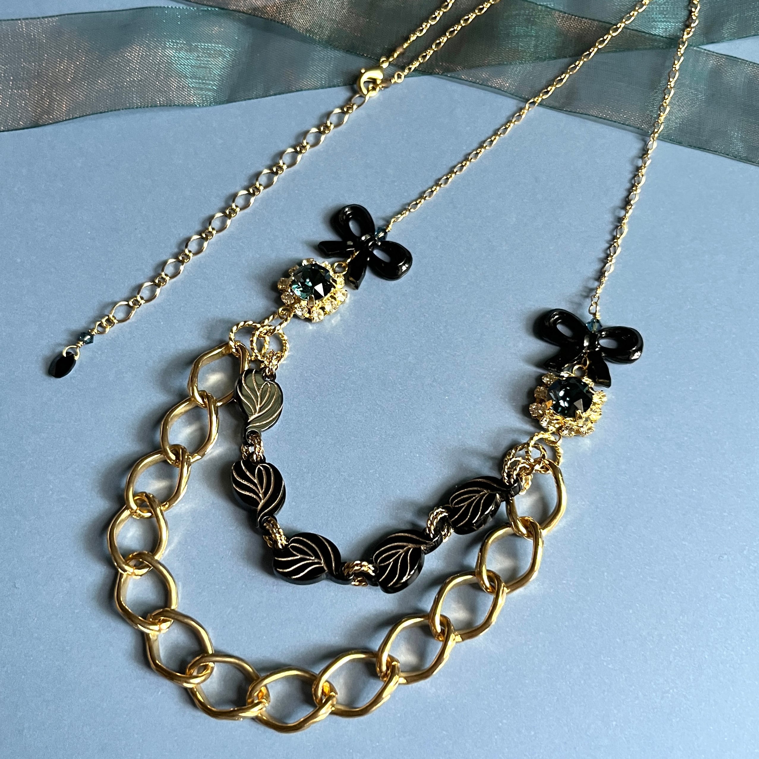 三ツ編魔法使いのネックレス【黒髪に金の鎖】