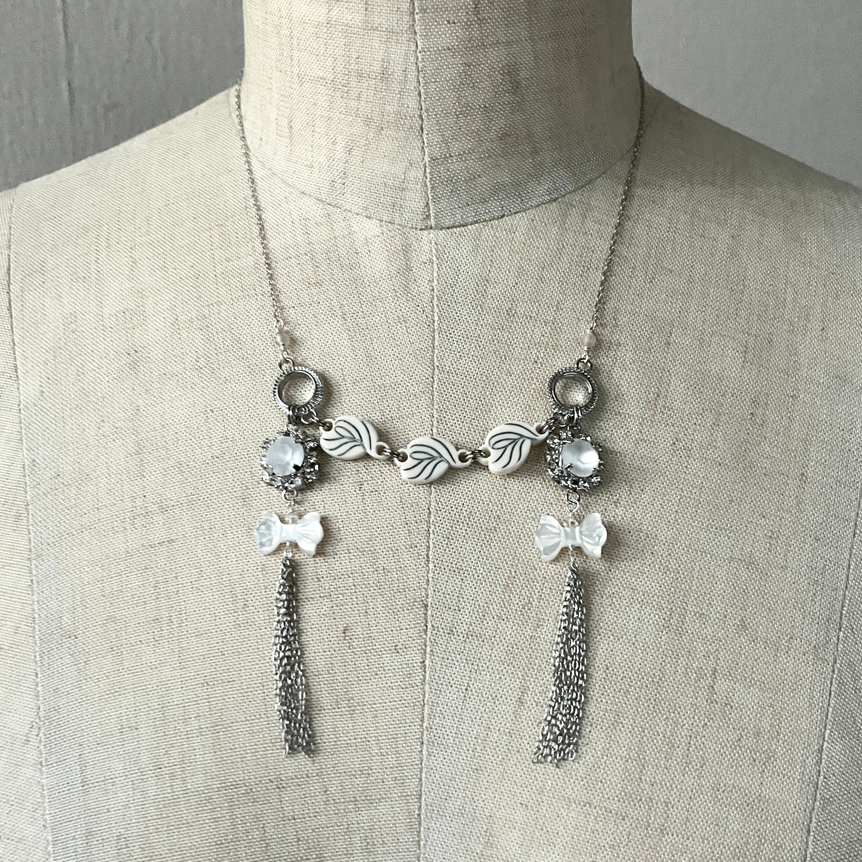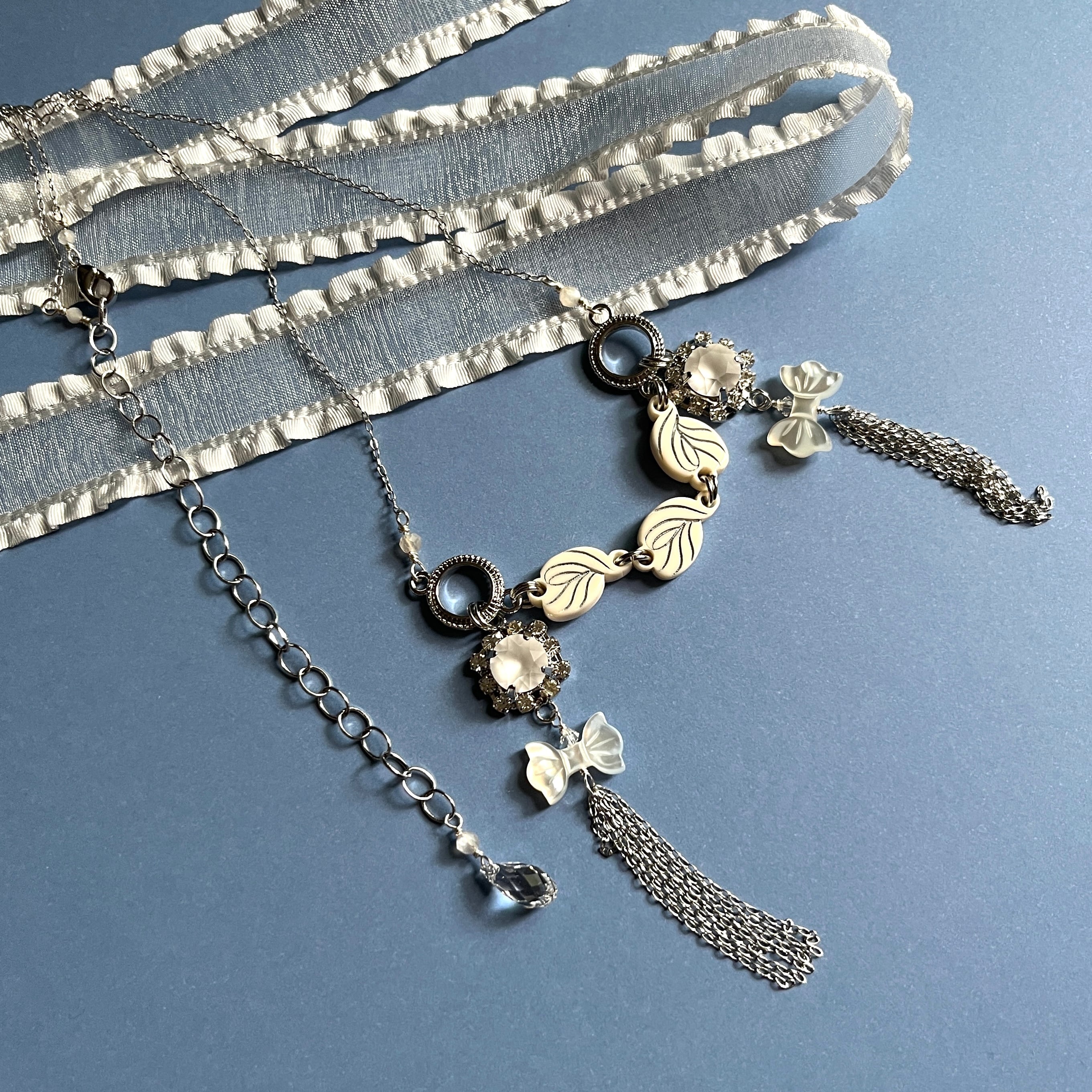 三ツ編魔法使いのネックレス【白髪に白いリボンとタッセル】