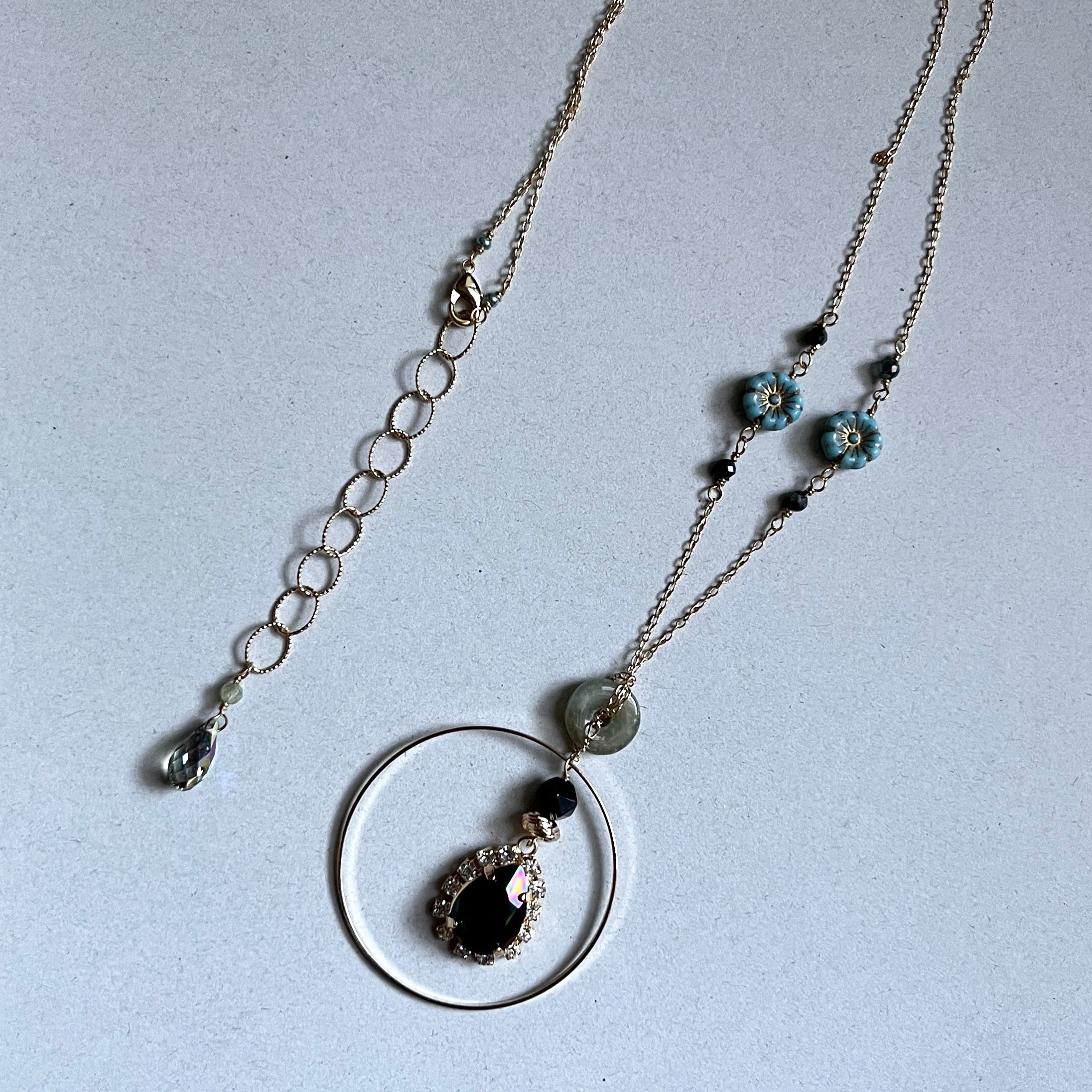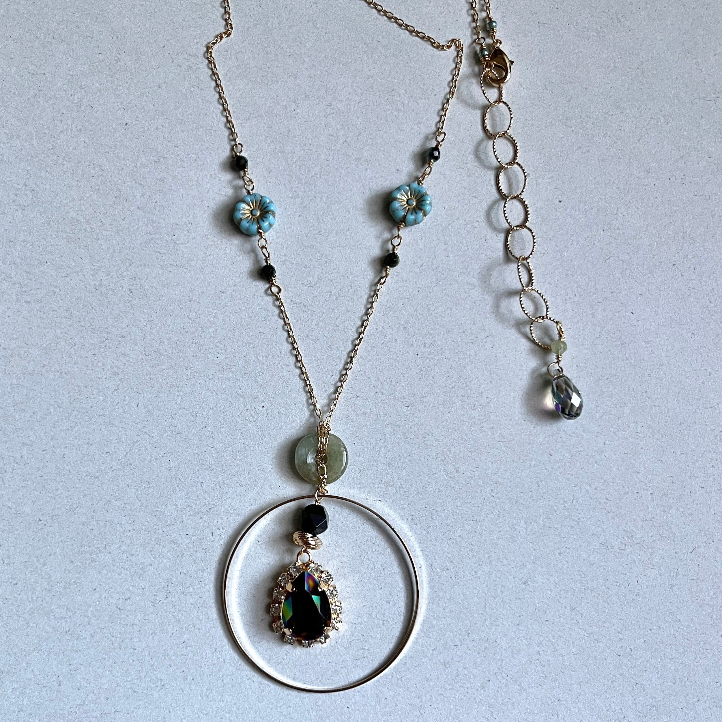 ドーナツ型のヒスイ、オニキス、黒や緑のトルマリンと