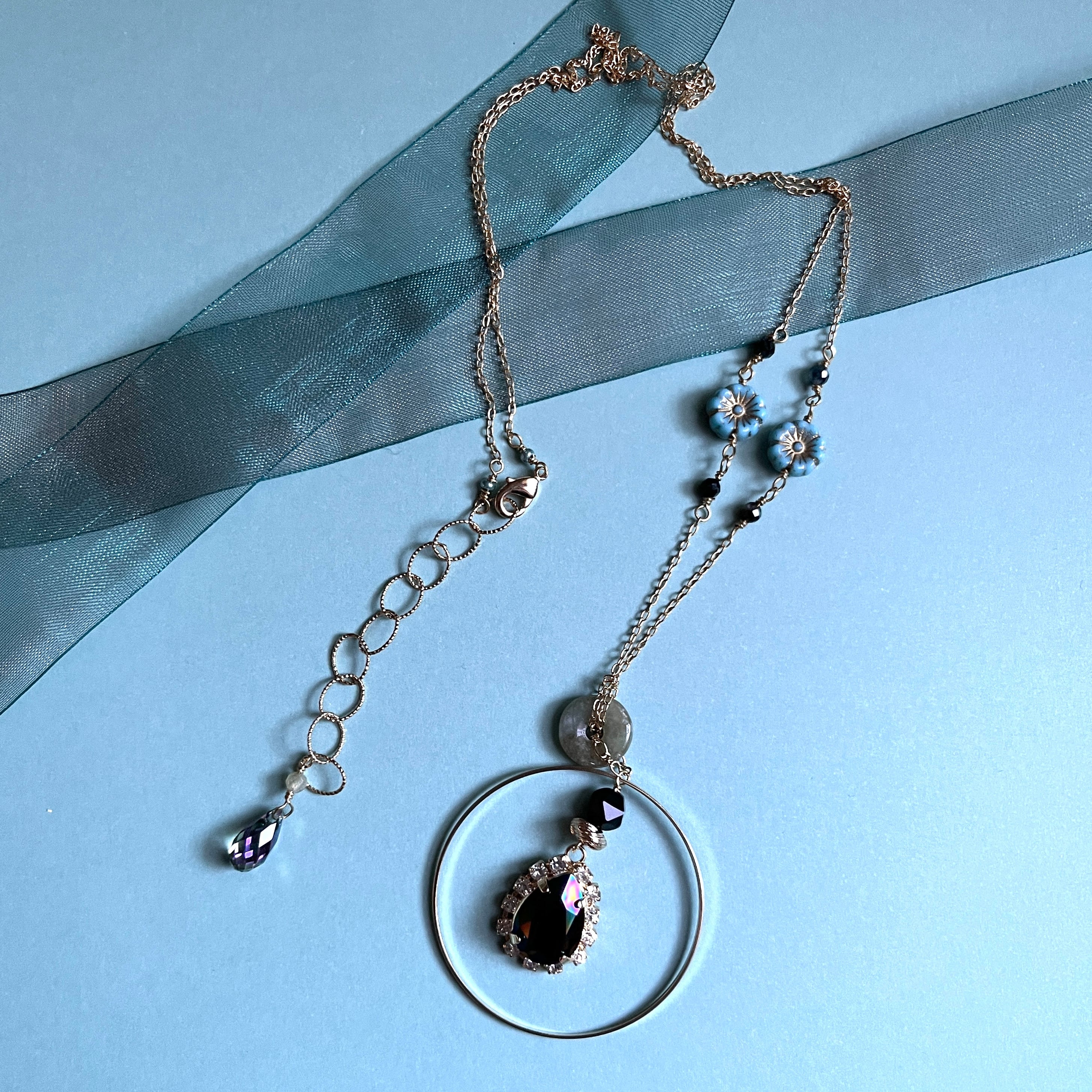 黒の上に油の反射があるような、妖しいマーブルのガラスストーンをトップに