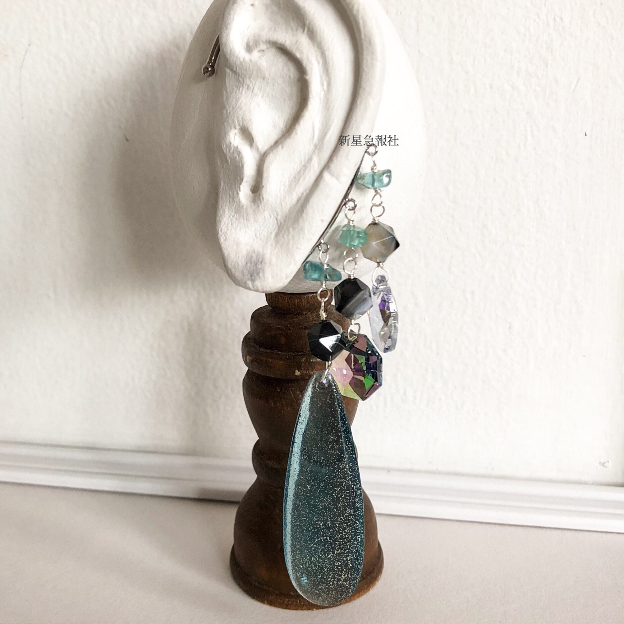 こちらは夏の海のきらめきとパーティのためのイヤーフックです。