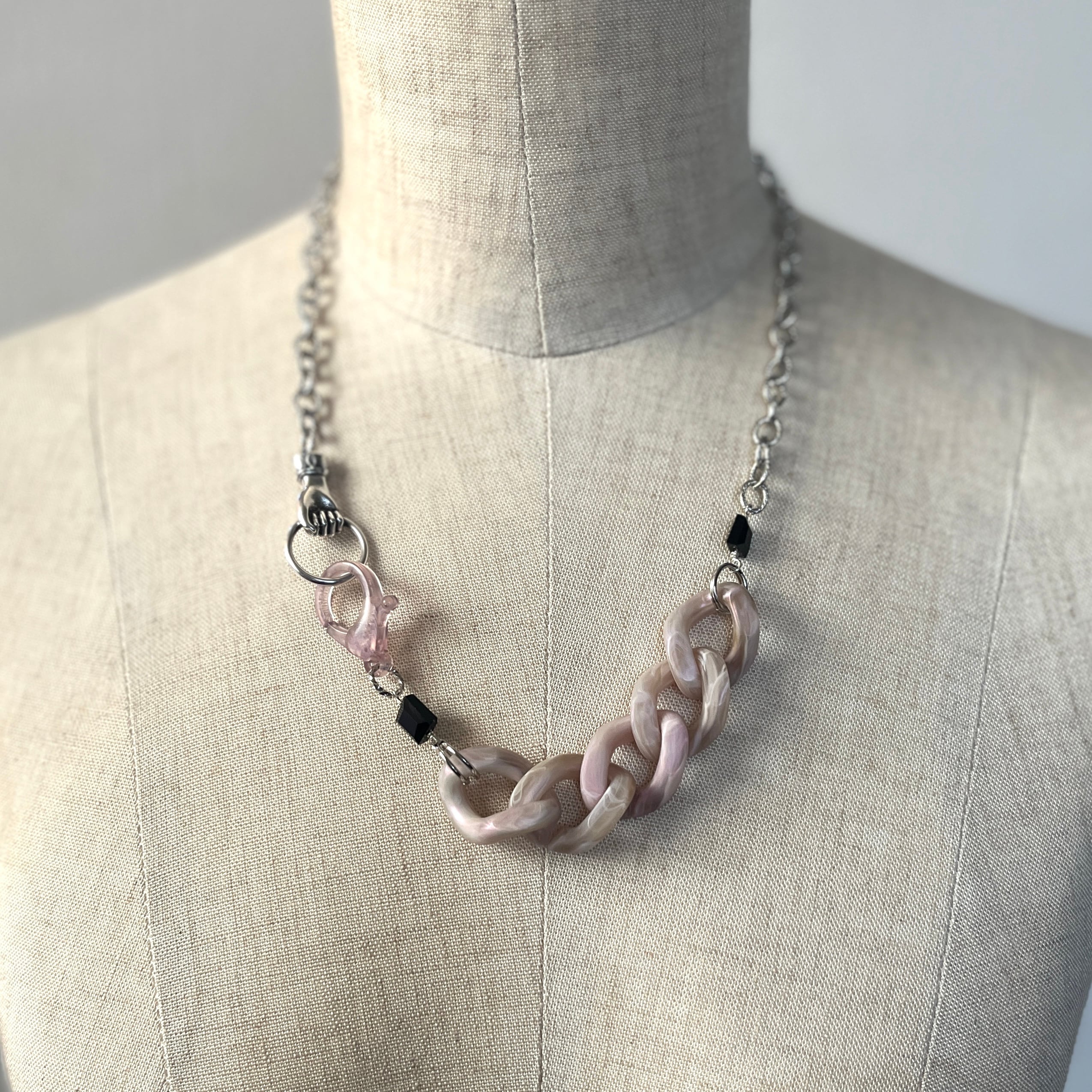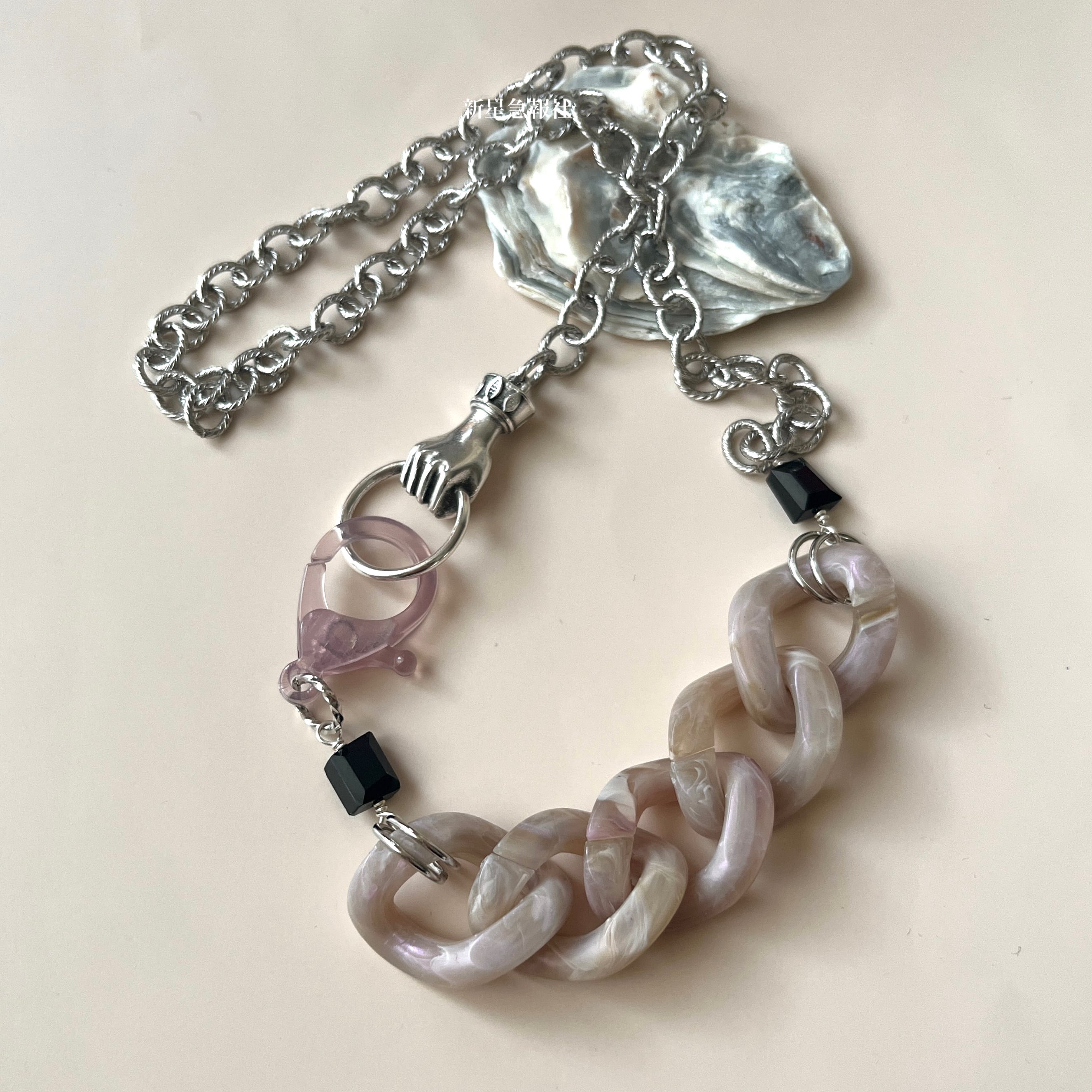 留め具もデザインの中に入れ込んだ存在感のあるネックレスです。