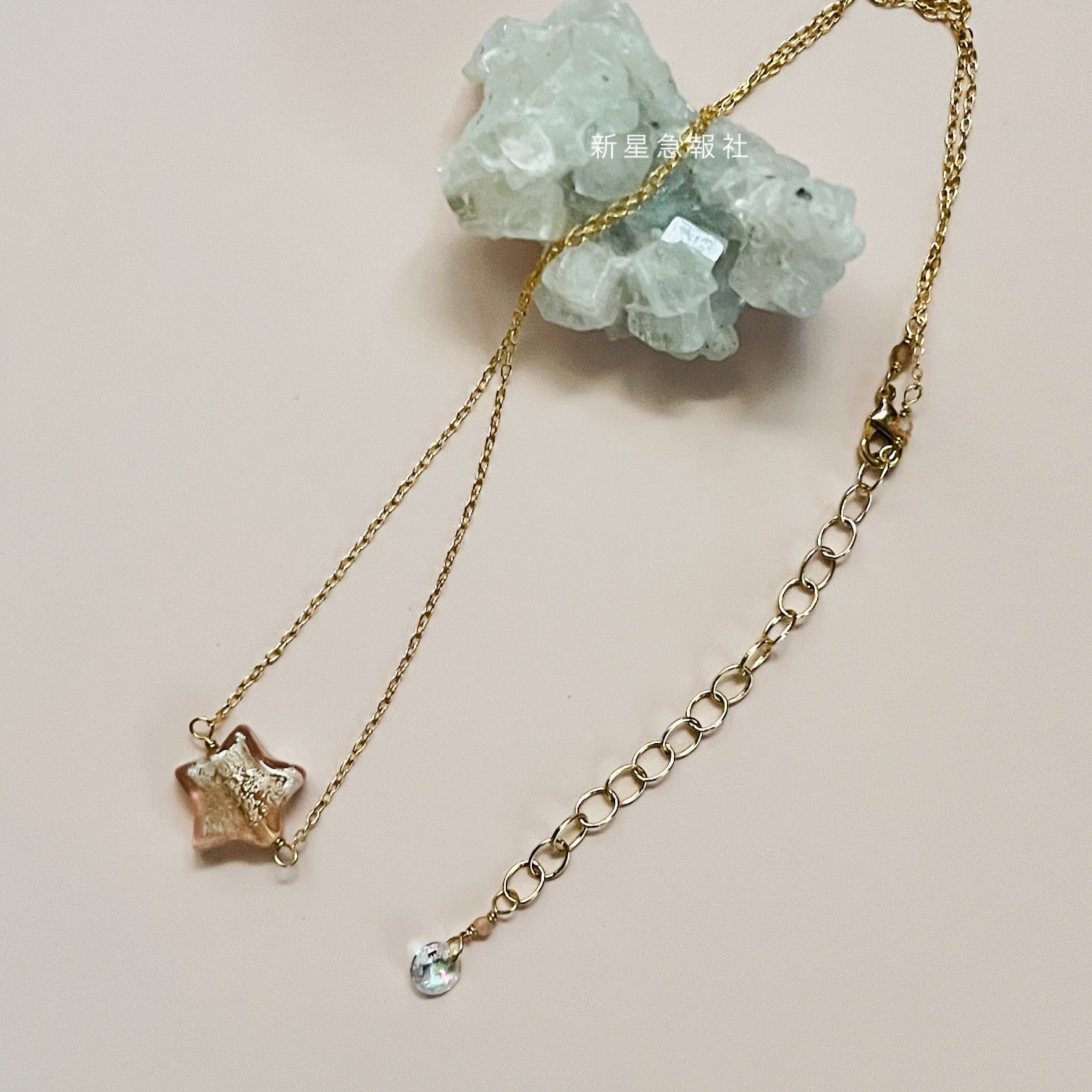 中に銀色の幕の見えるベネチアンガラスの星型のものをトップにしたネックレス。