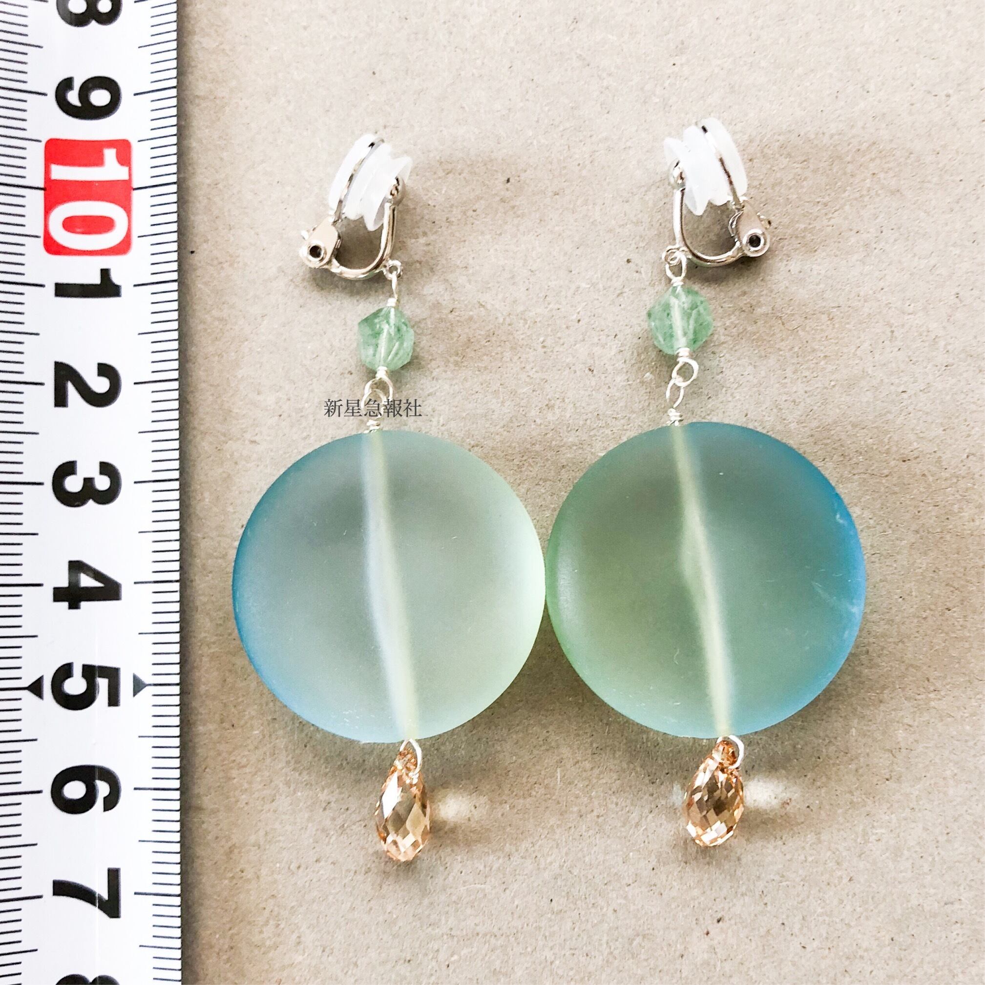 大きなモチーフがガラスなので重ためのイヤリングです。