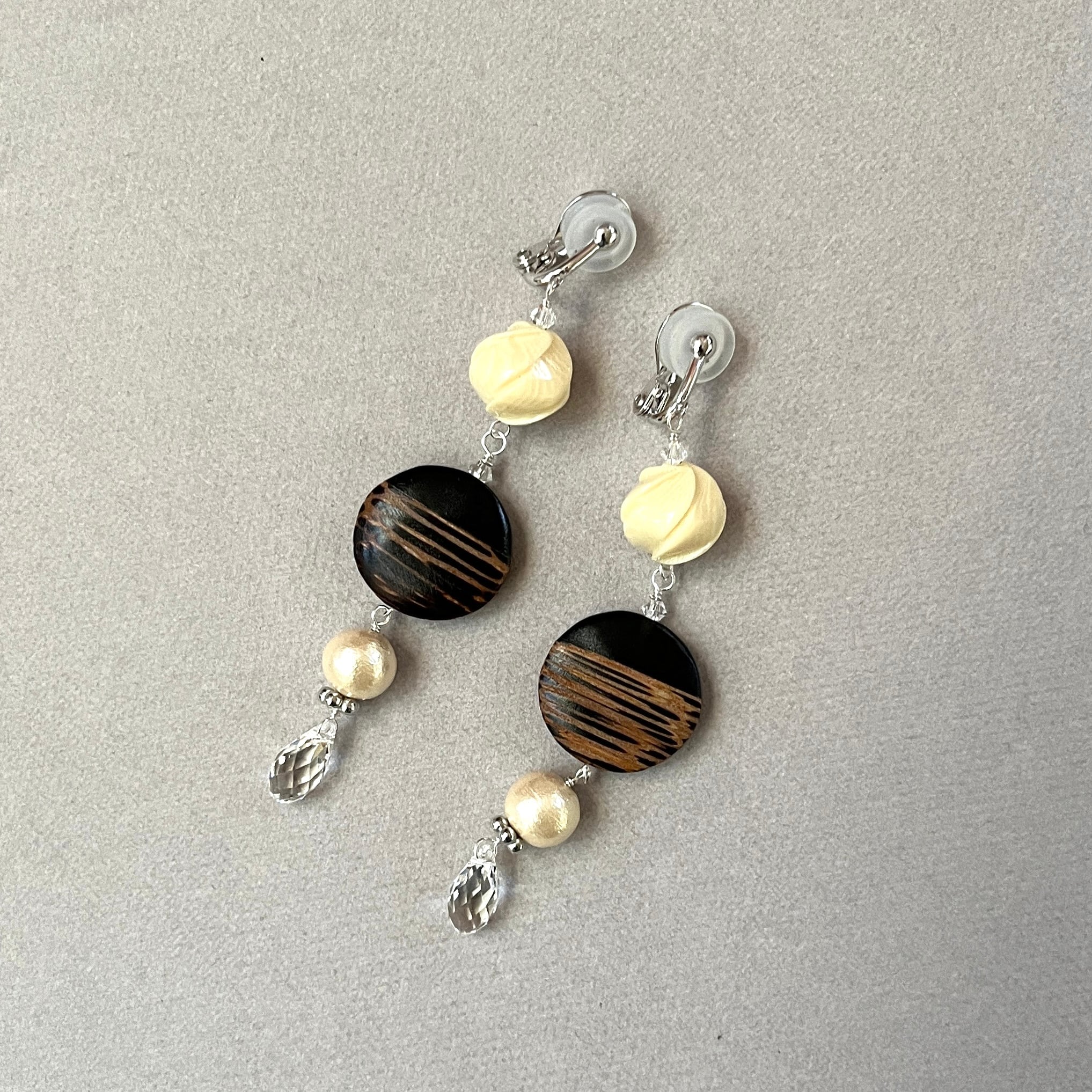 ユニークなビーズで、静かな一瞬を描いたイヤリングです。