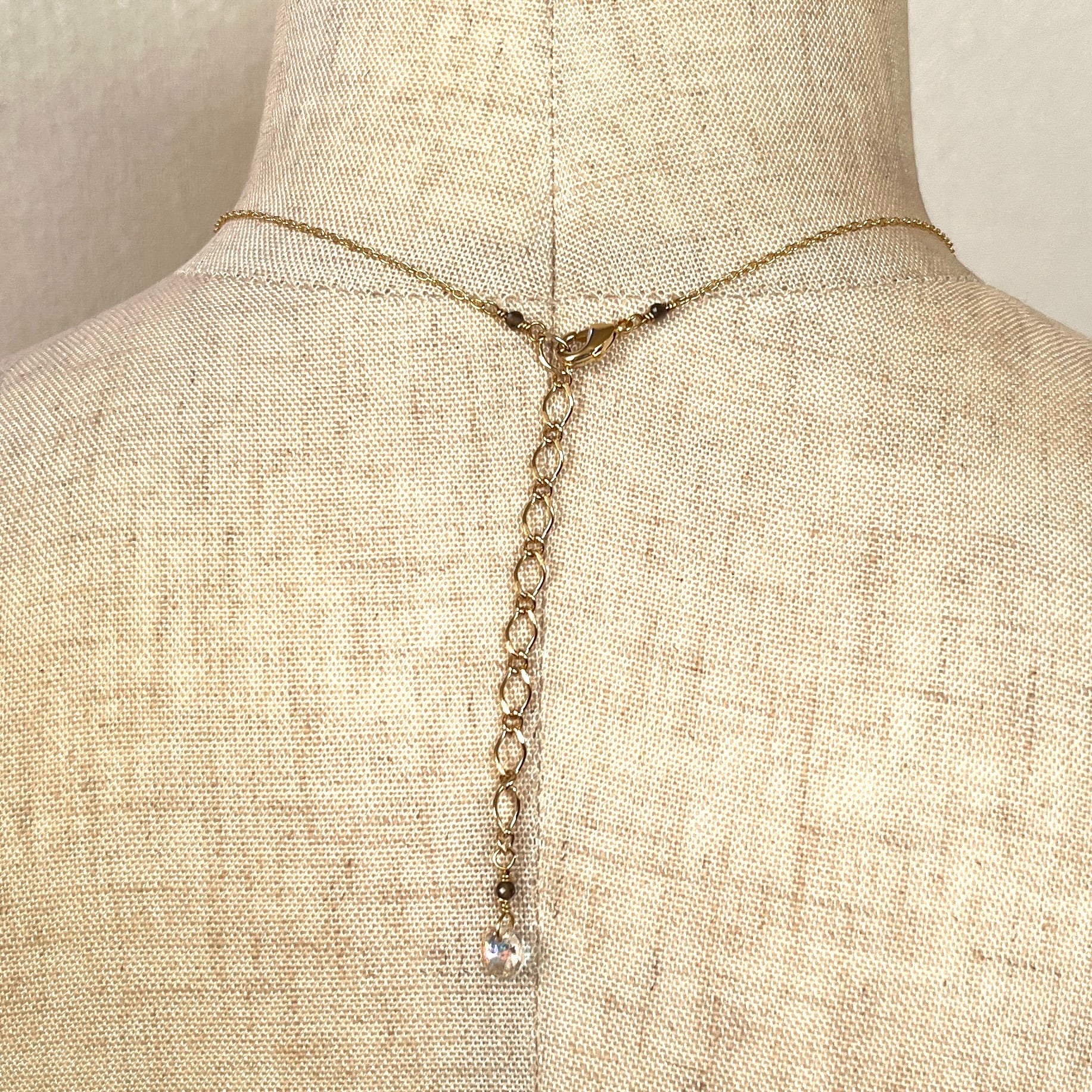 現在はカニカンを右手で持ち、背中のほうで留める形状です。
