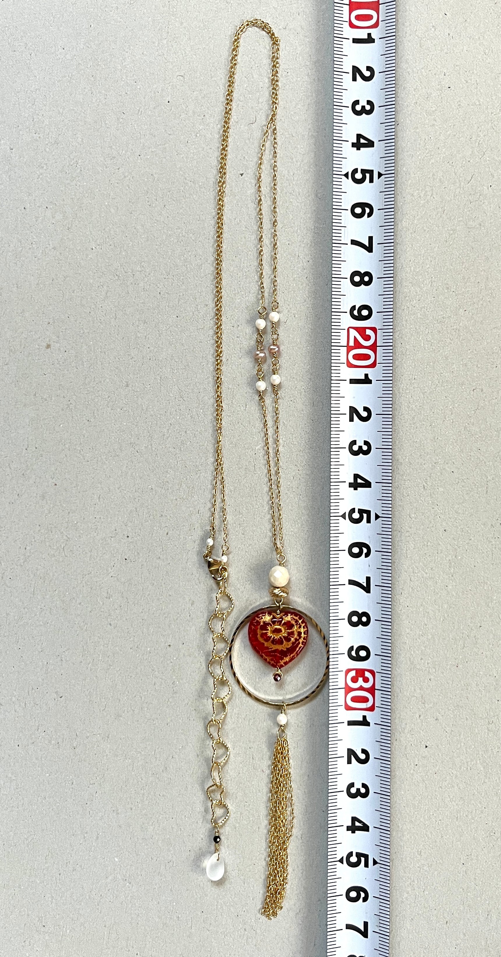 ハートの形のチェコ製ビーズをメインにしたネックレスです。