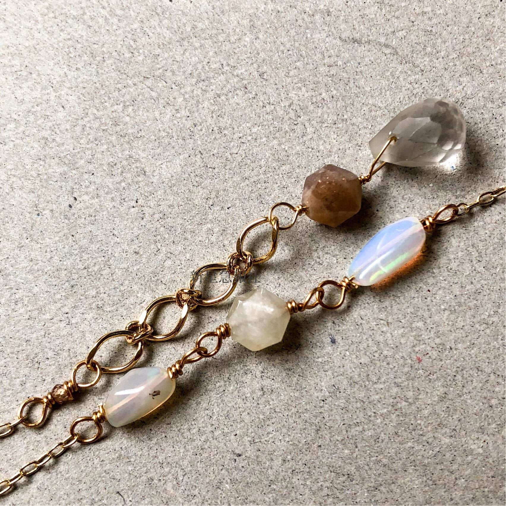 アクセサリーはプレシャスオパール、ムーンストーン、水晶、ジルコンを含みます。