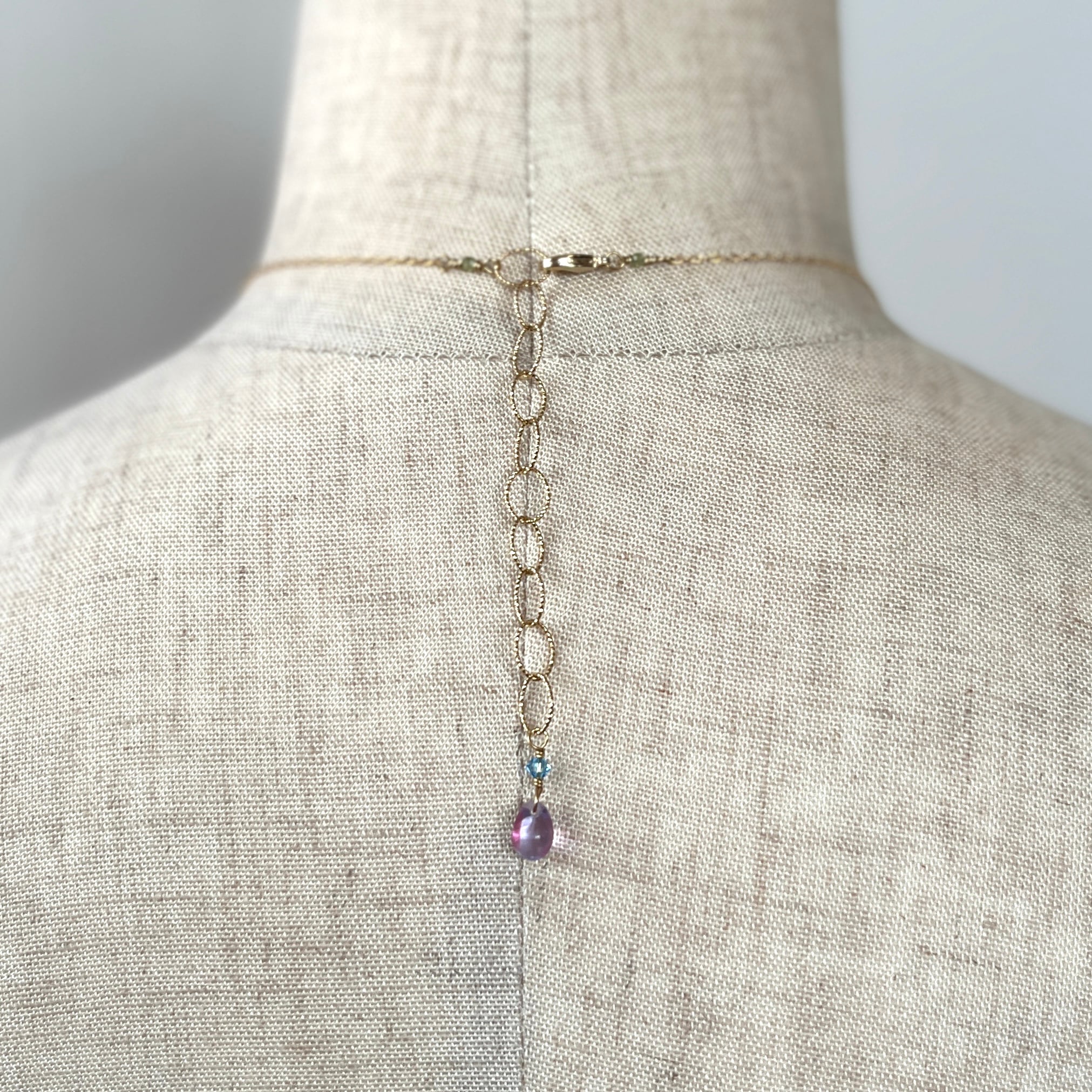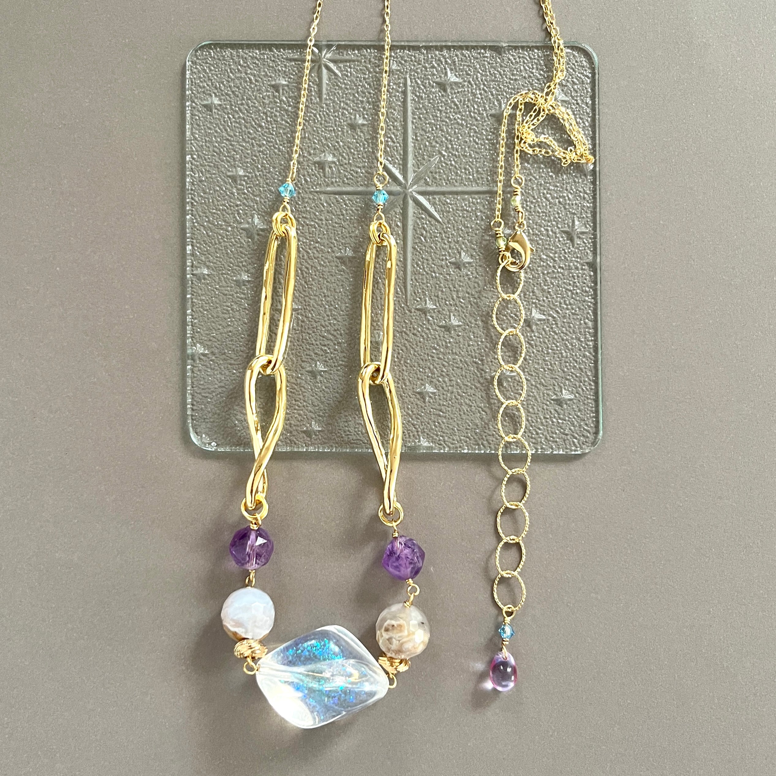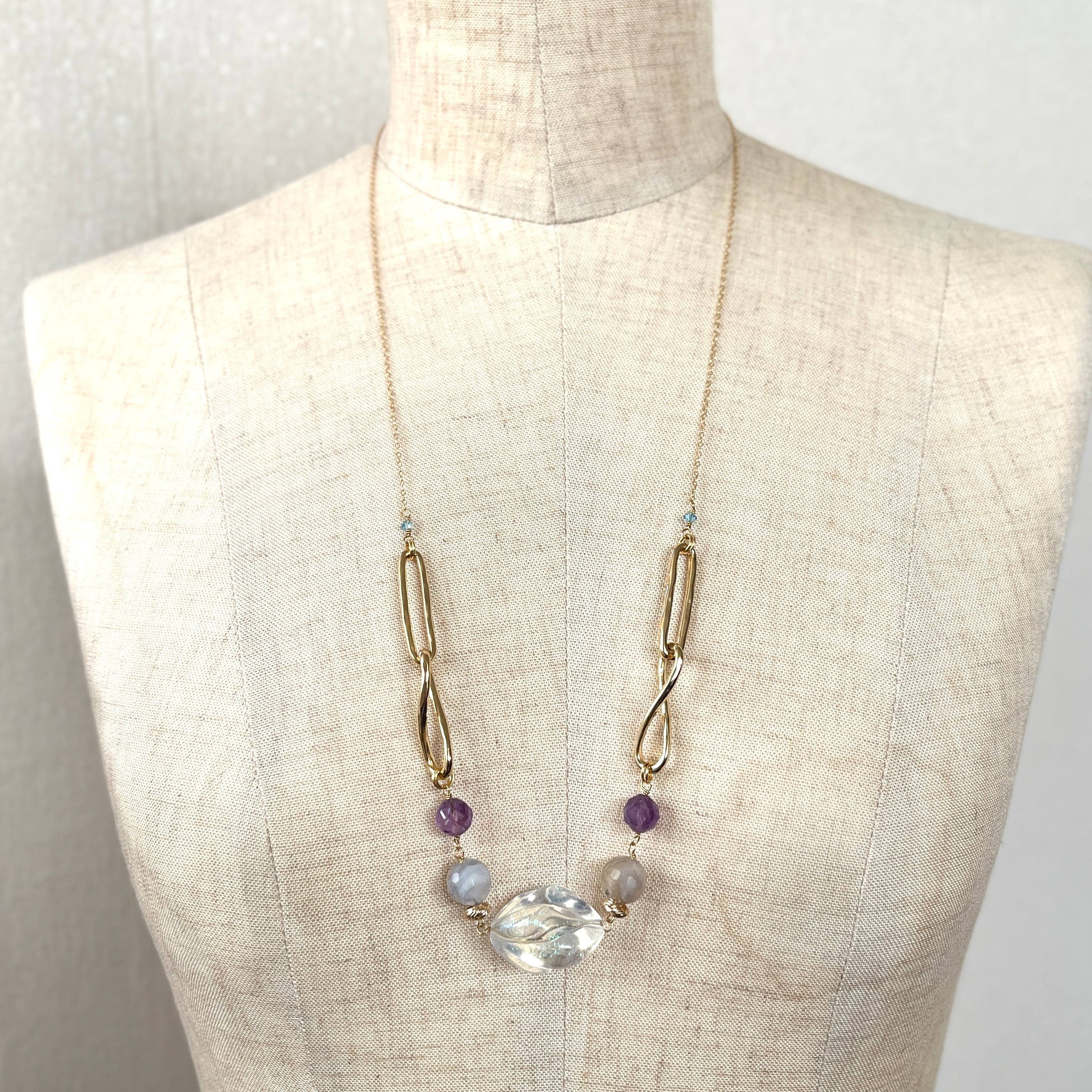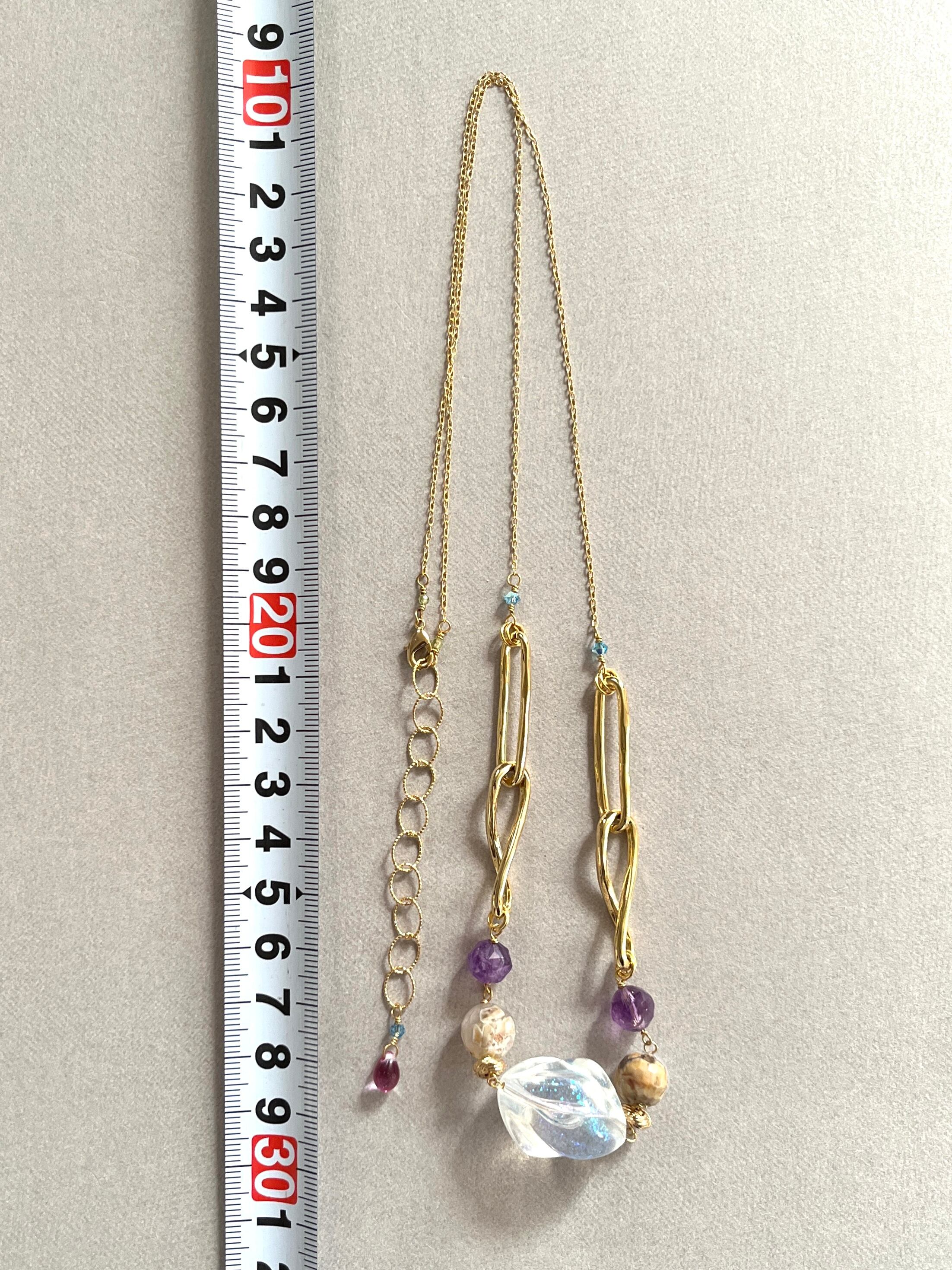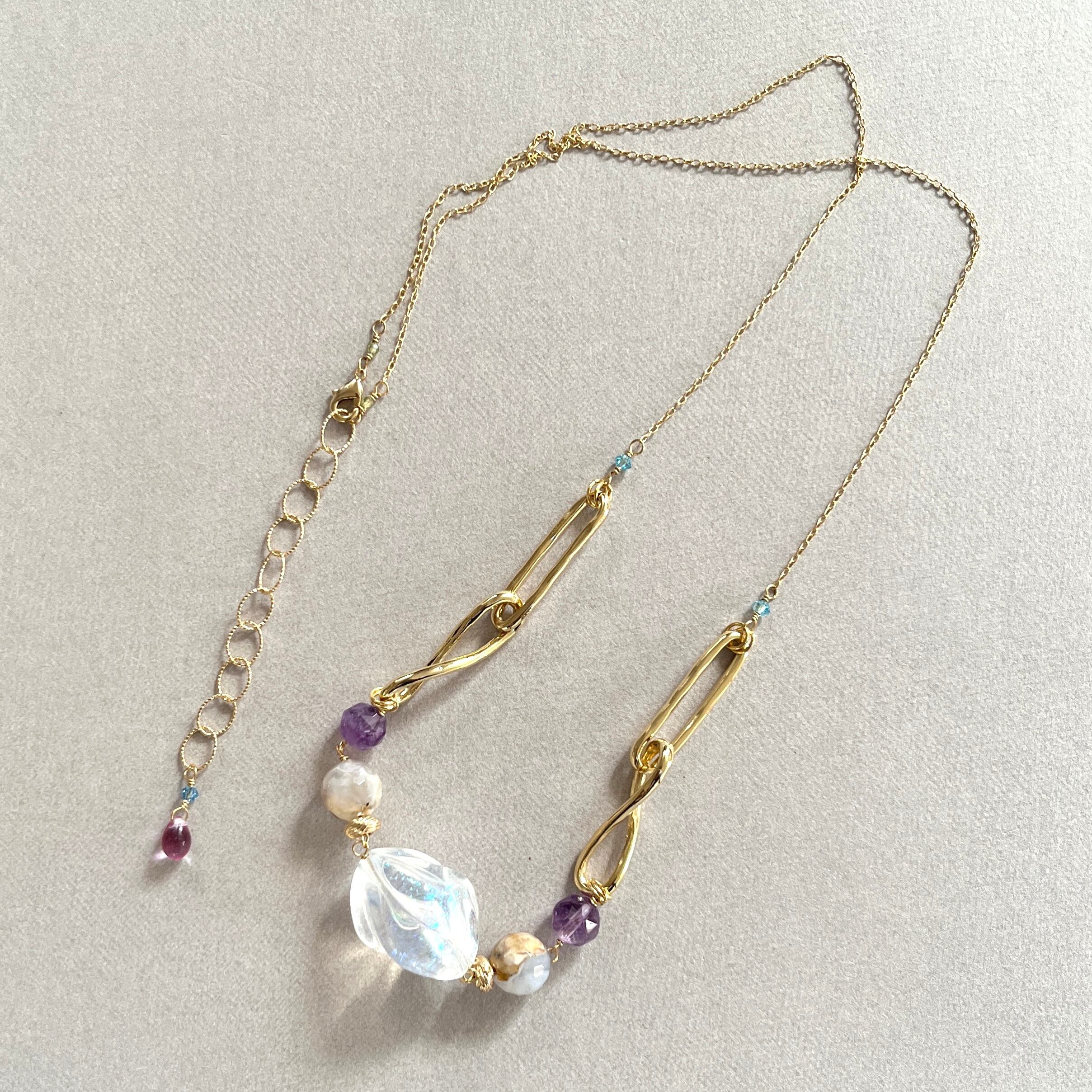 曇り空のようなカルセドニーやグレープキャンディのようなアメシストを繋ぎました。