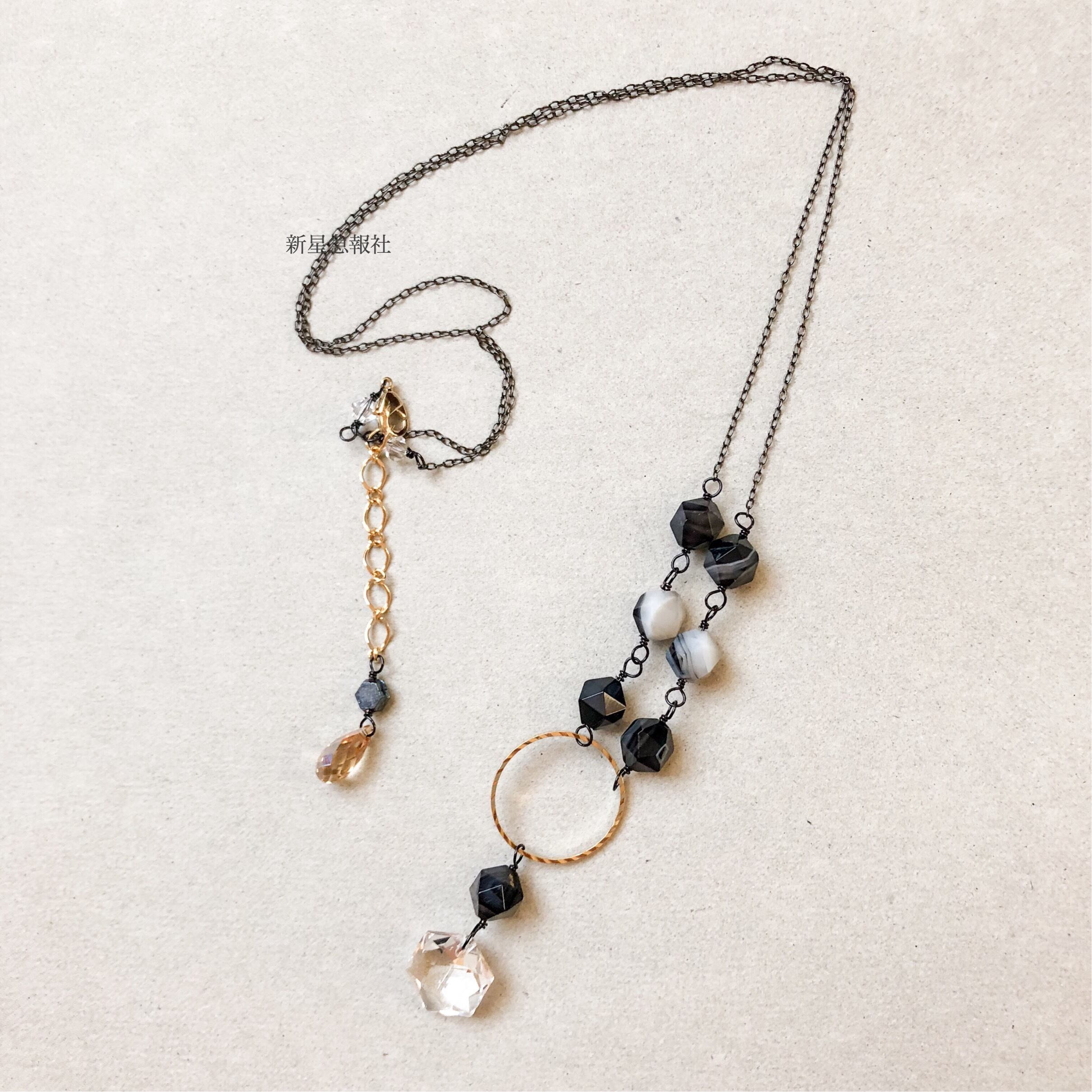 アクセサリーはオニキス、ガラス(一部スワロフスキー社製品、フランス製ヴィンテージビーズ)を含みます。