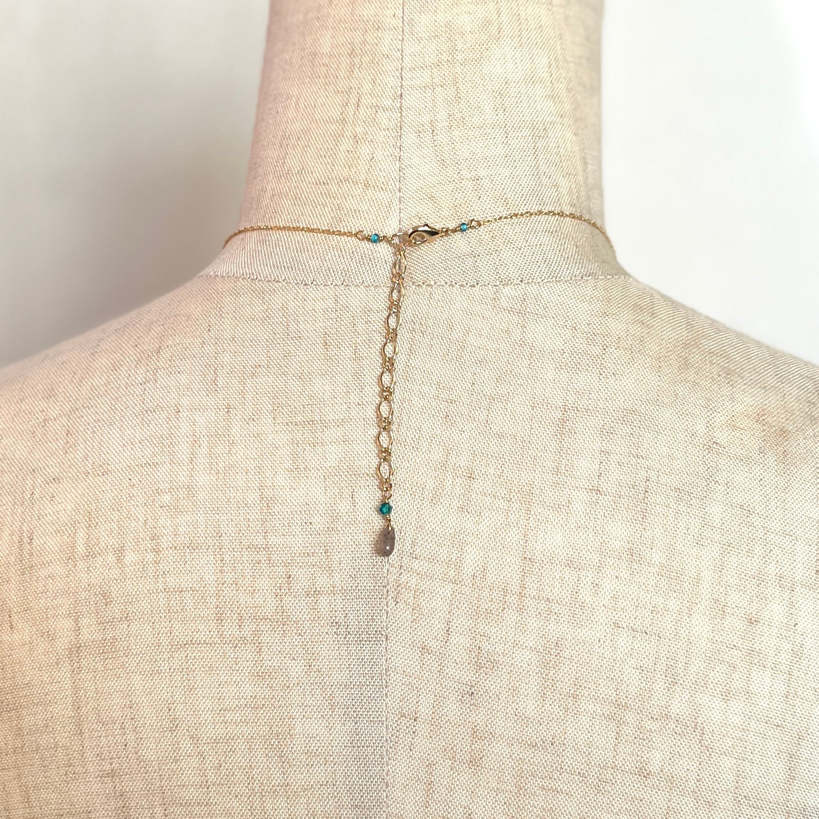 現在はカニカンを右手で持ち、背中のほうで留める形状です。
