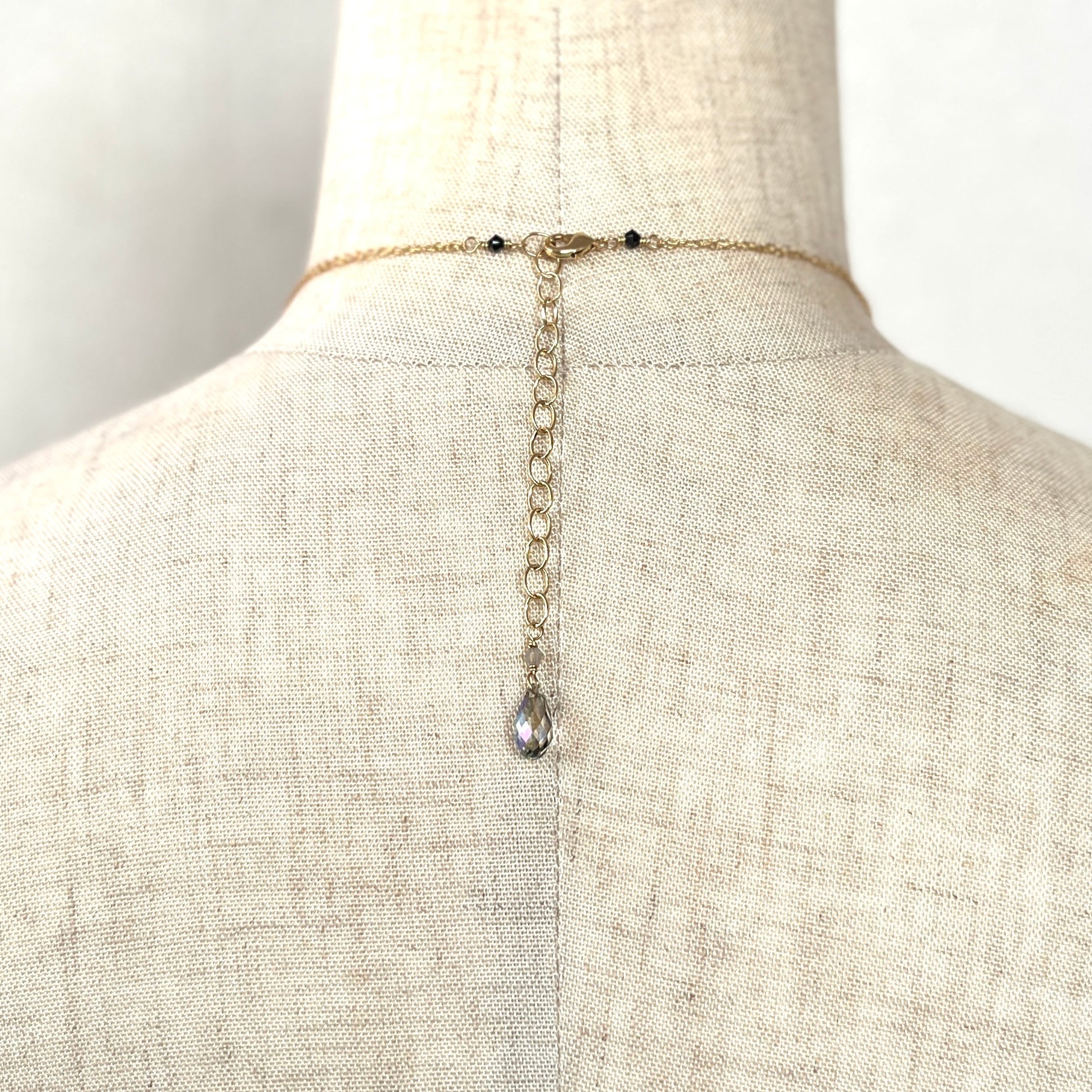 現在はカニカンを右手で持ち、背中のほうで留める形状です。