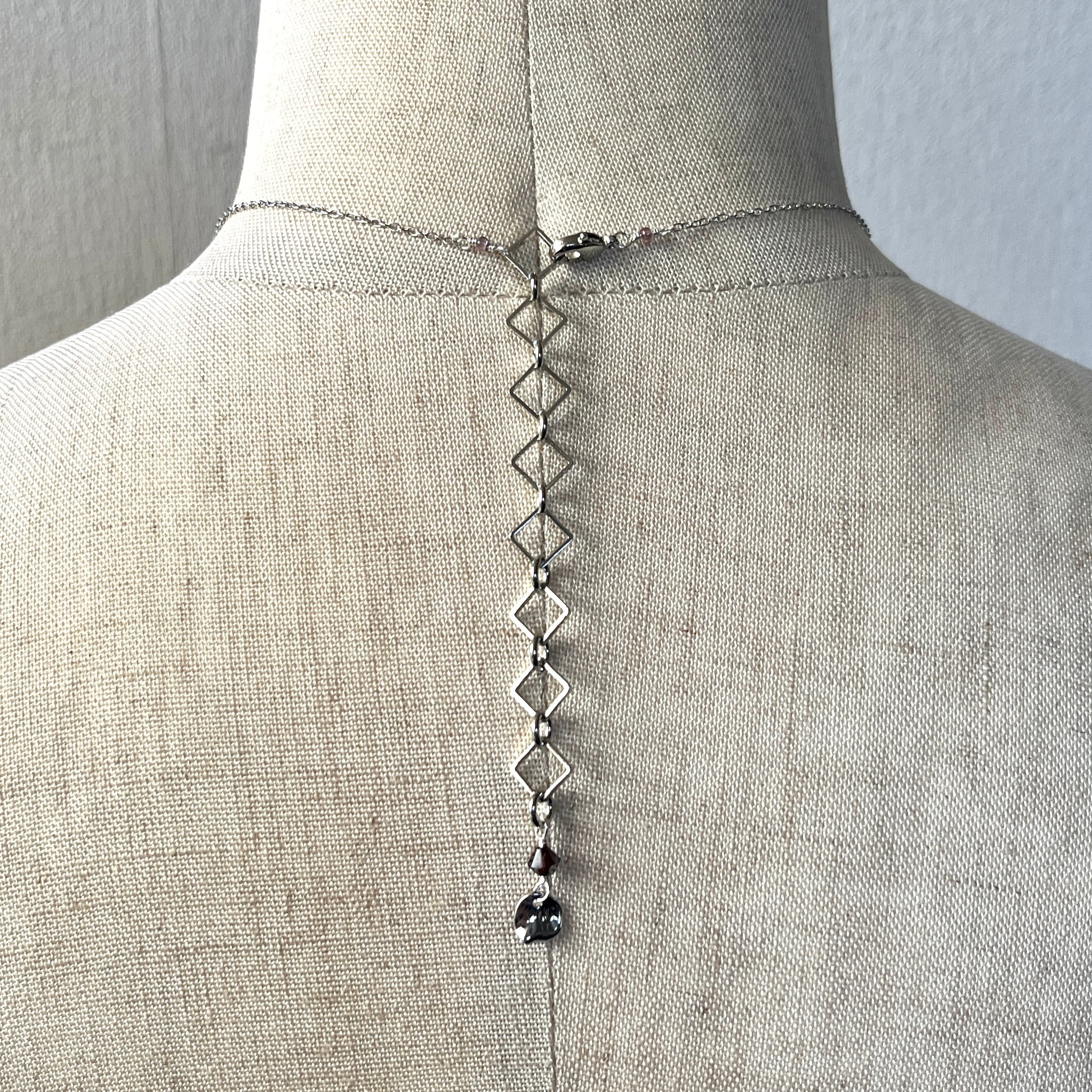 現在はカニカンを右手で持ち、背中のほうで留める形状です。
