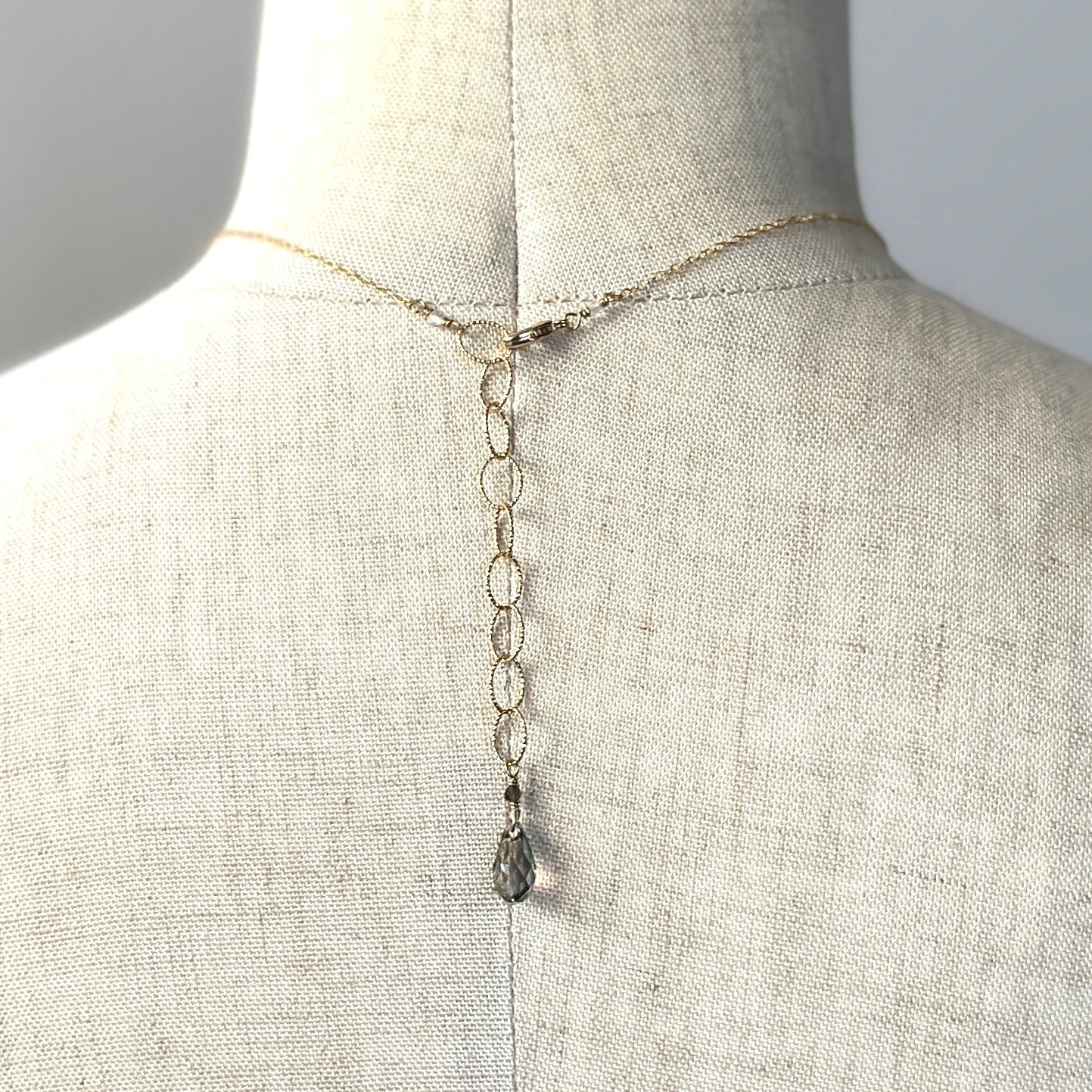 現在はカニカンを右手で持ち、背中のほうで留める形状です。
