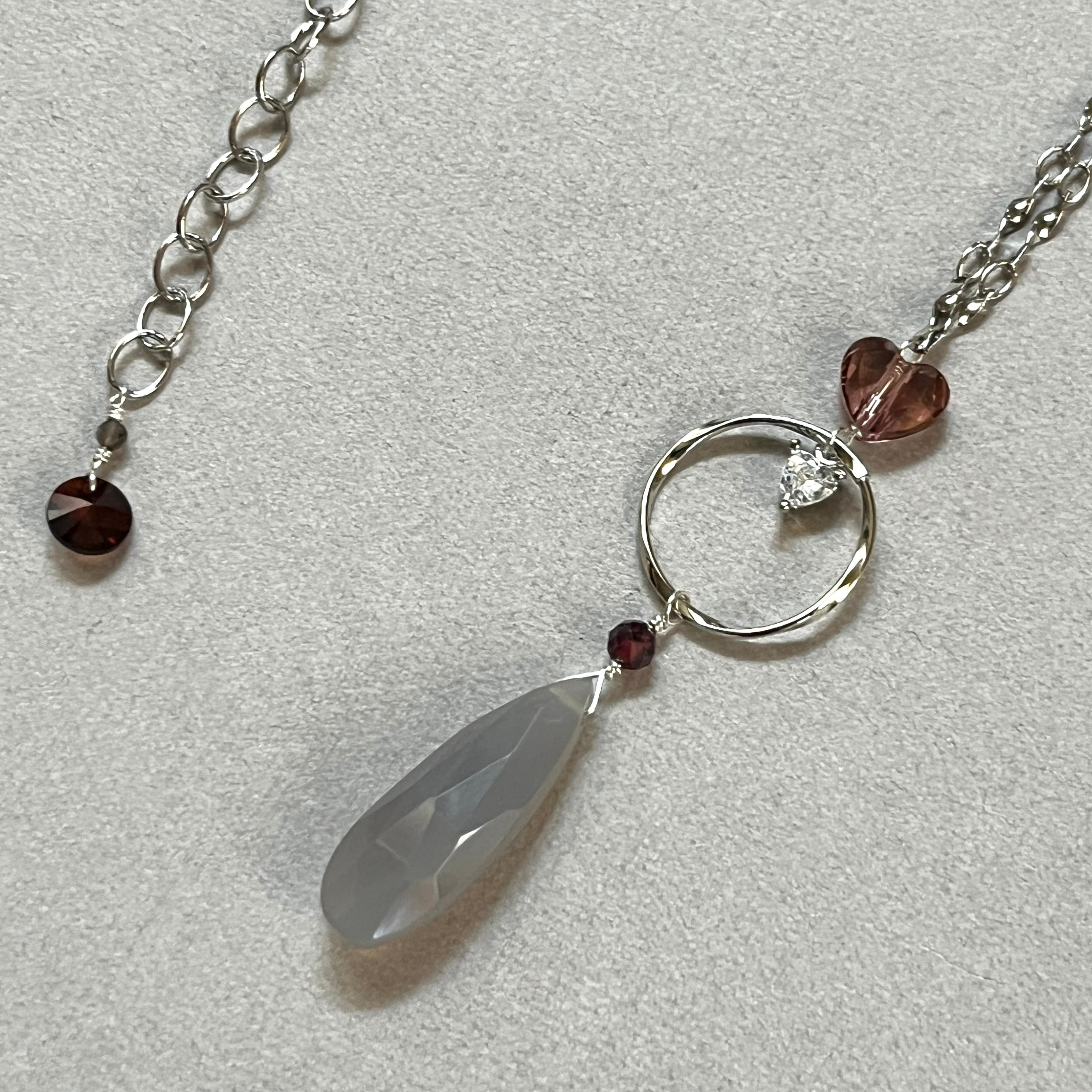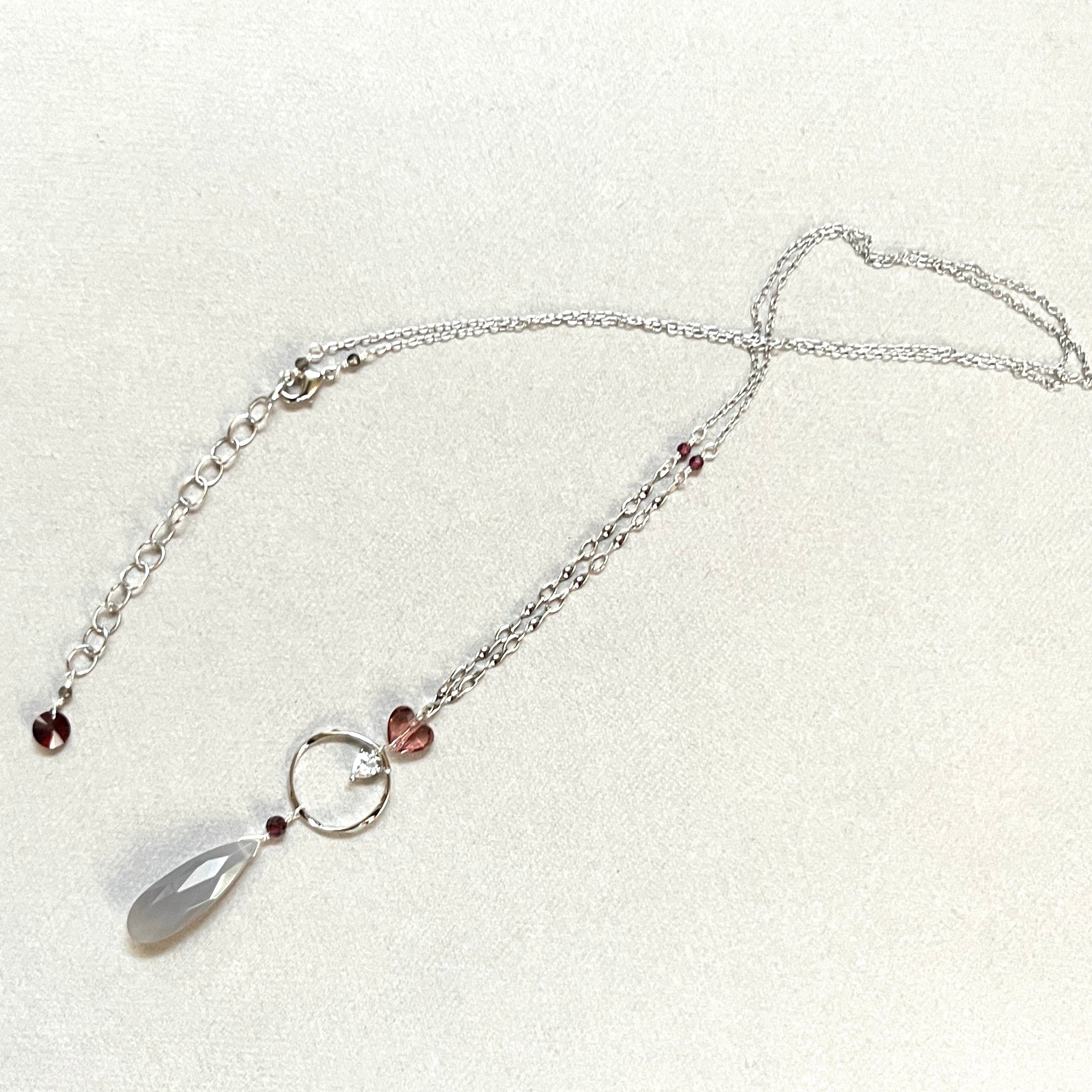 キュービックジルコニア、ピンクのガラスと二つのハートを添えました