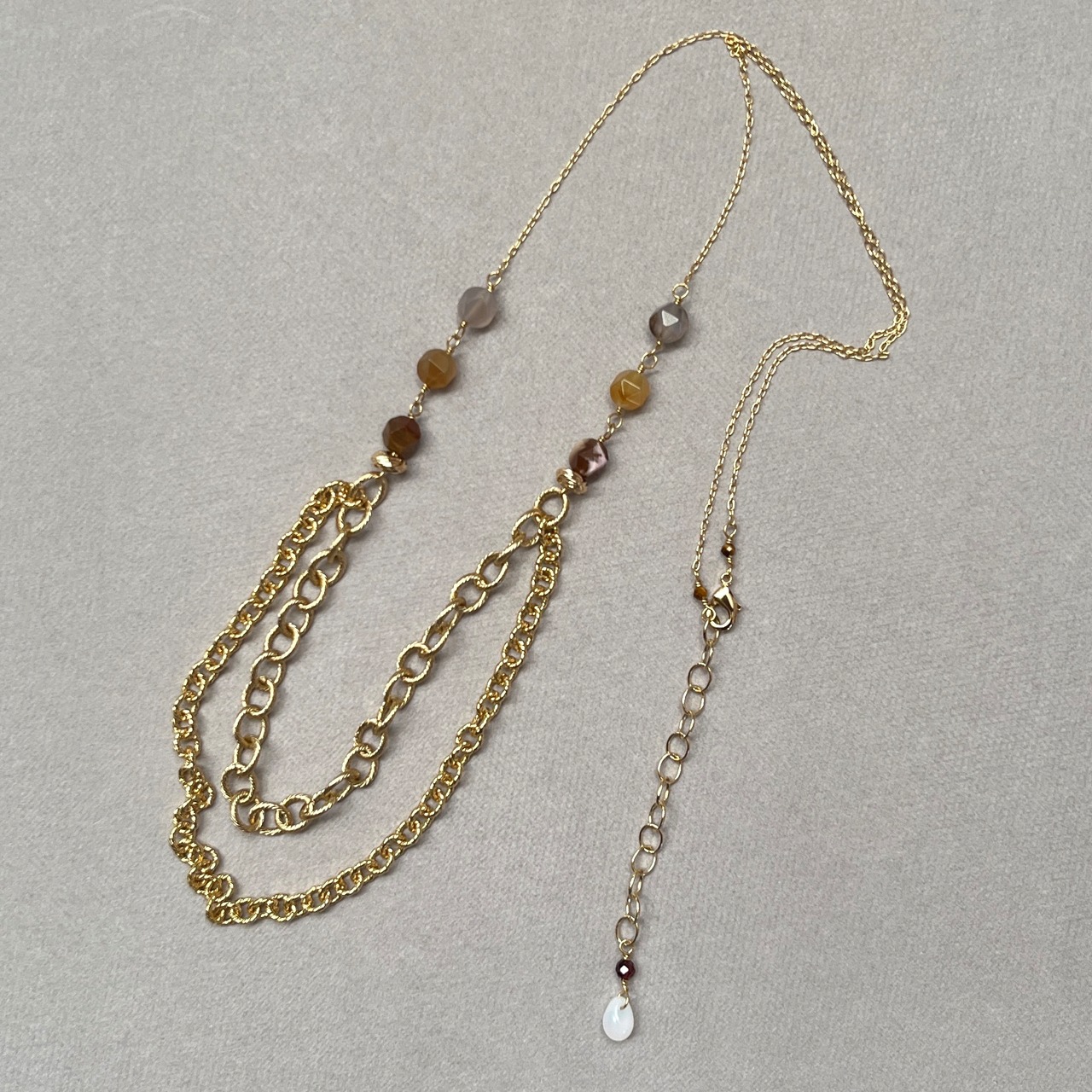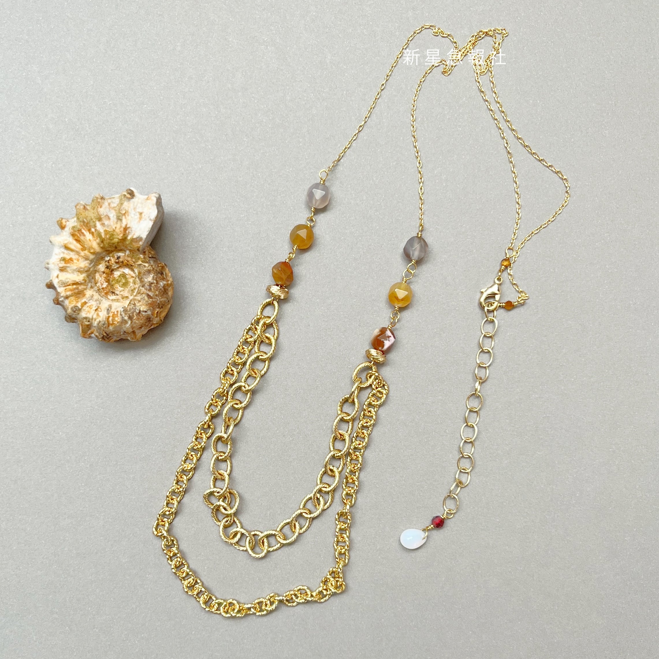 桂化木、タイガーアイ、ガーネット、ガラス(チェコ製)