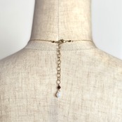 現在はカニカンを右手で持ち、背中のほうで留める形状です。