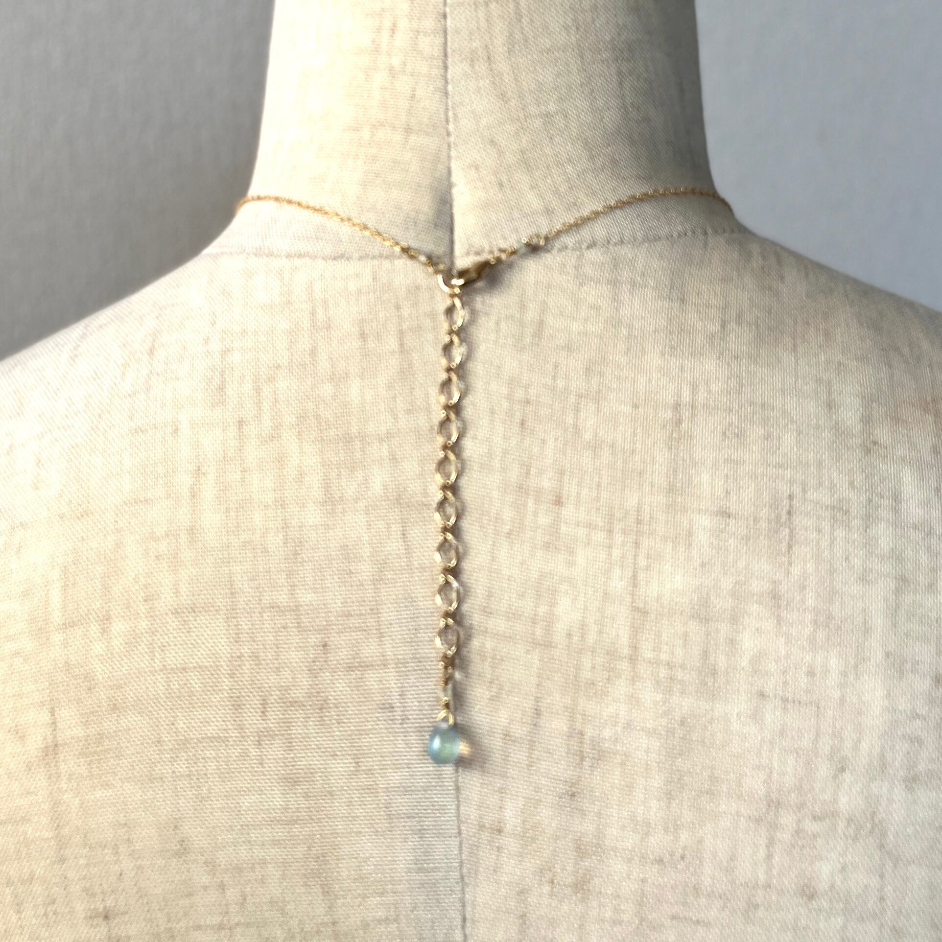 現在はカニカンを右手で持ち、背中のほうで留める形状です。