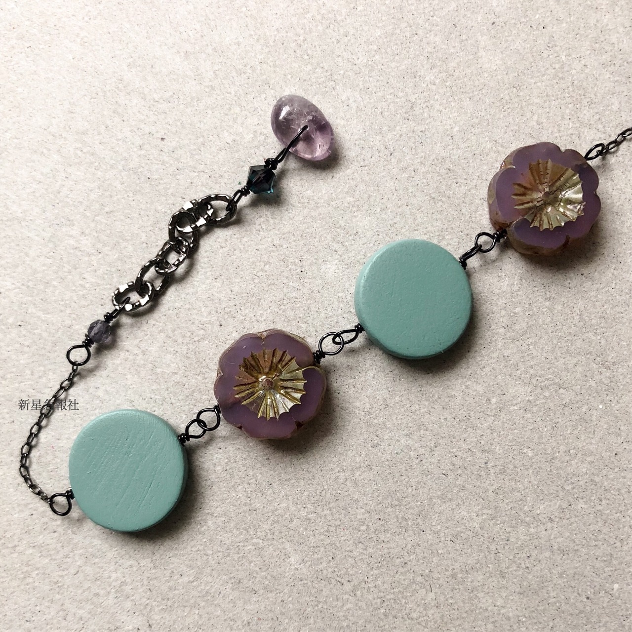 アクセサリーは木製品、ガラス(一部チェコビーズ、スワロフスキー社製)