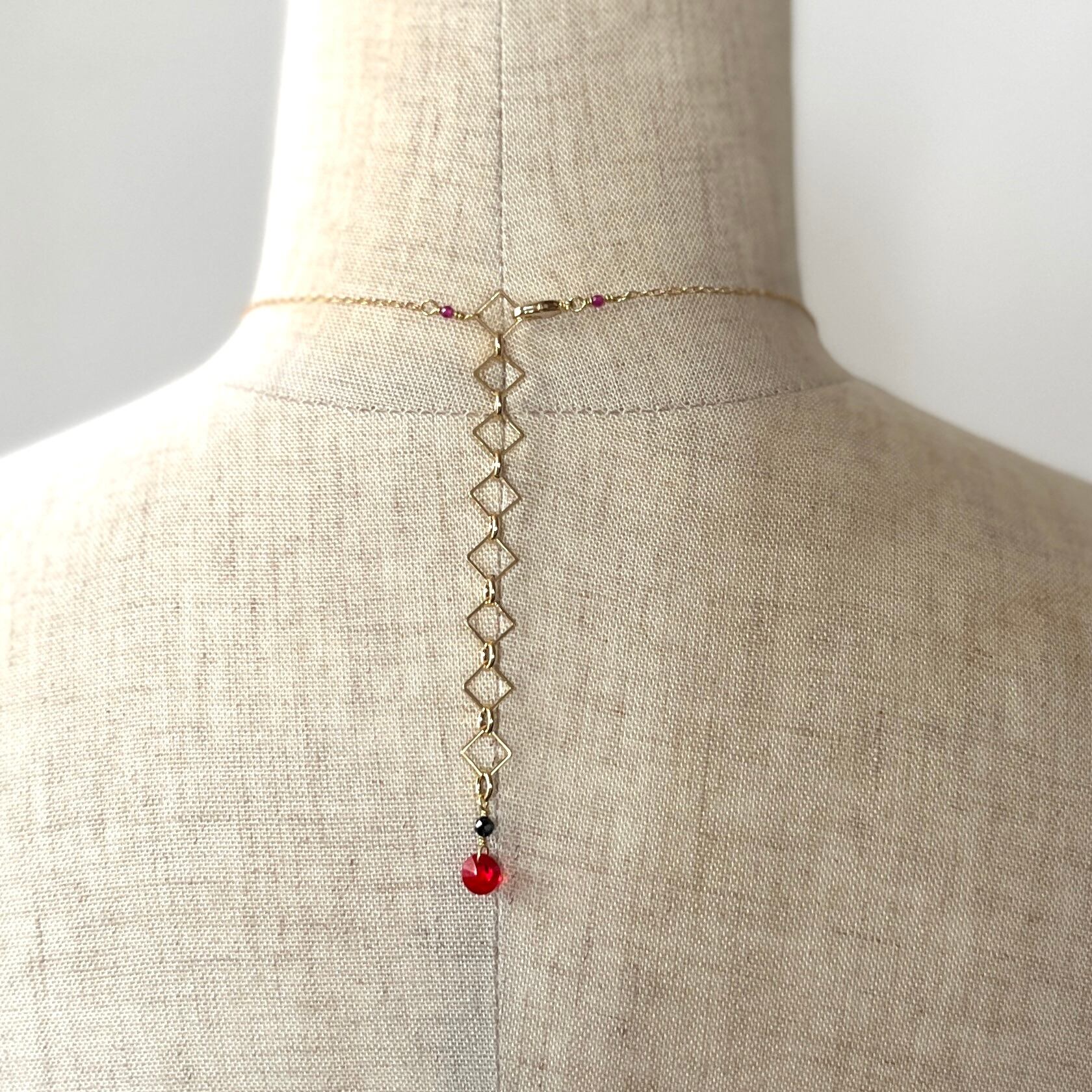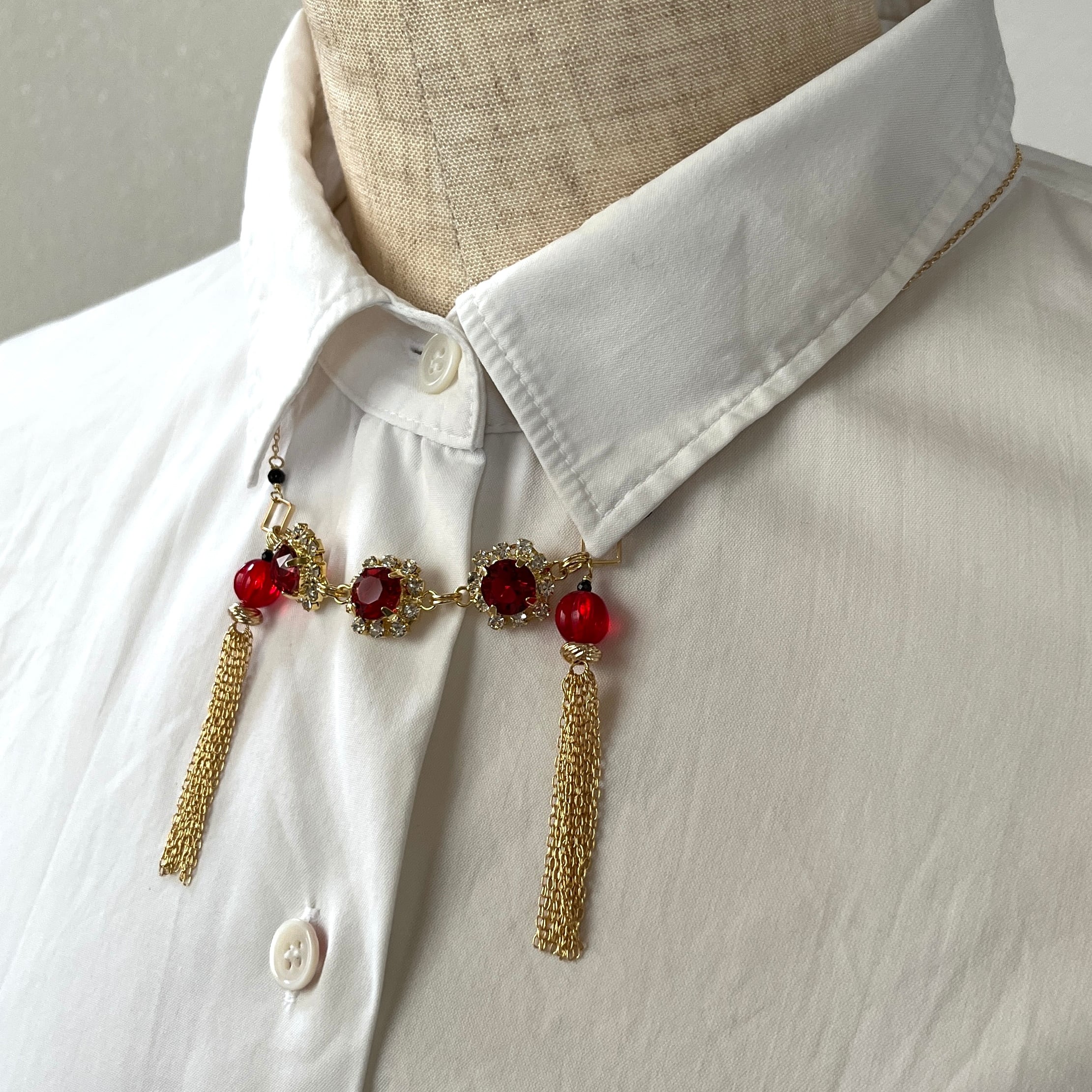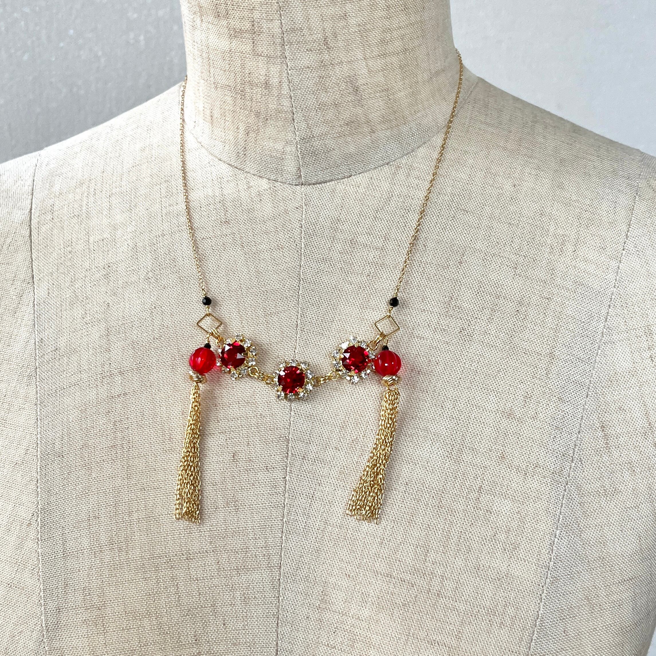 澄んだ鮮やかな赤色のガラスが印象的なネックレス。