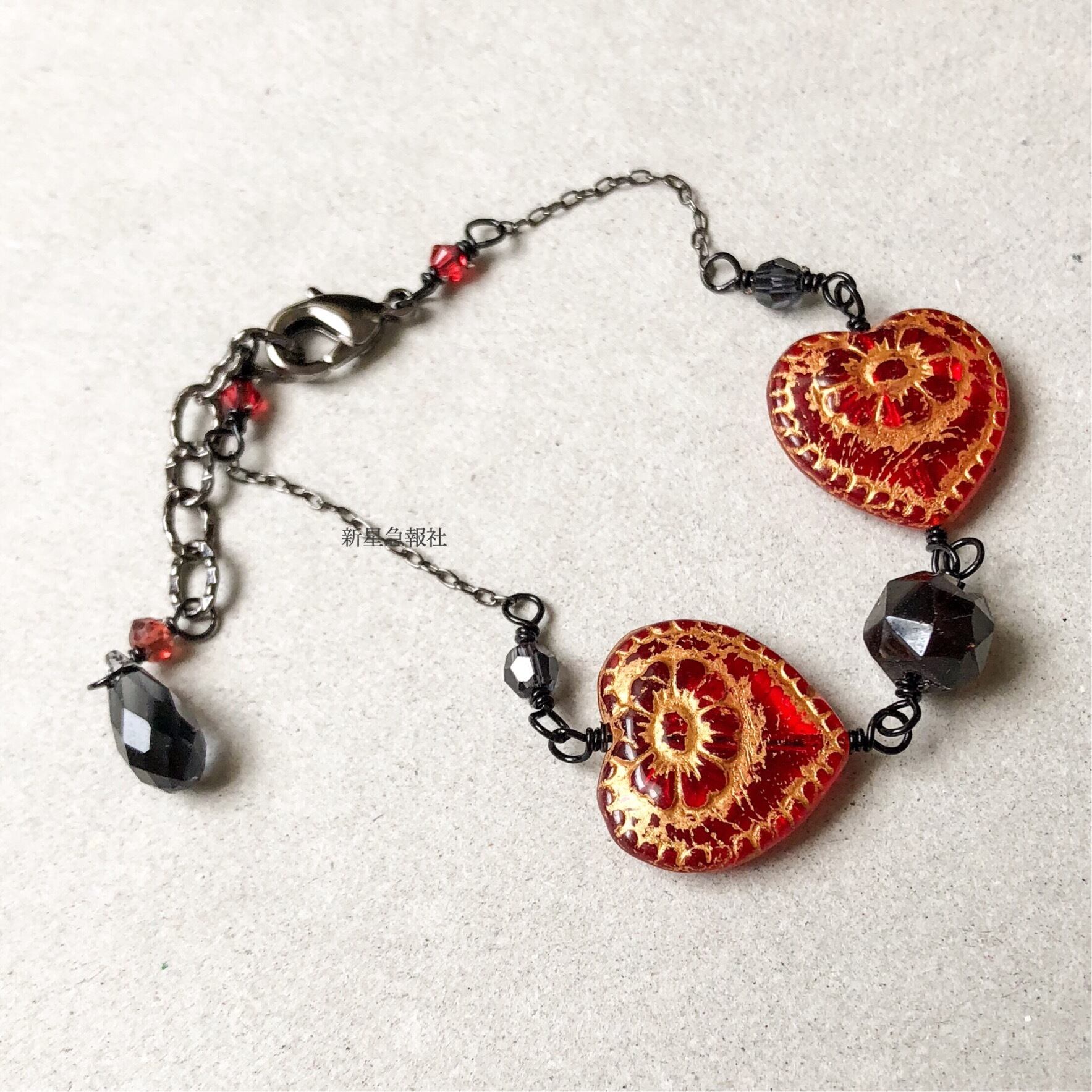 ガラス(一部チェコビーズ、スワロフスキー社製)を含みます。