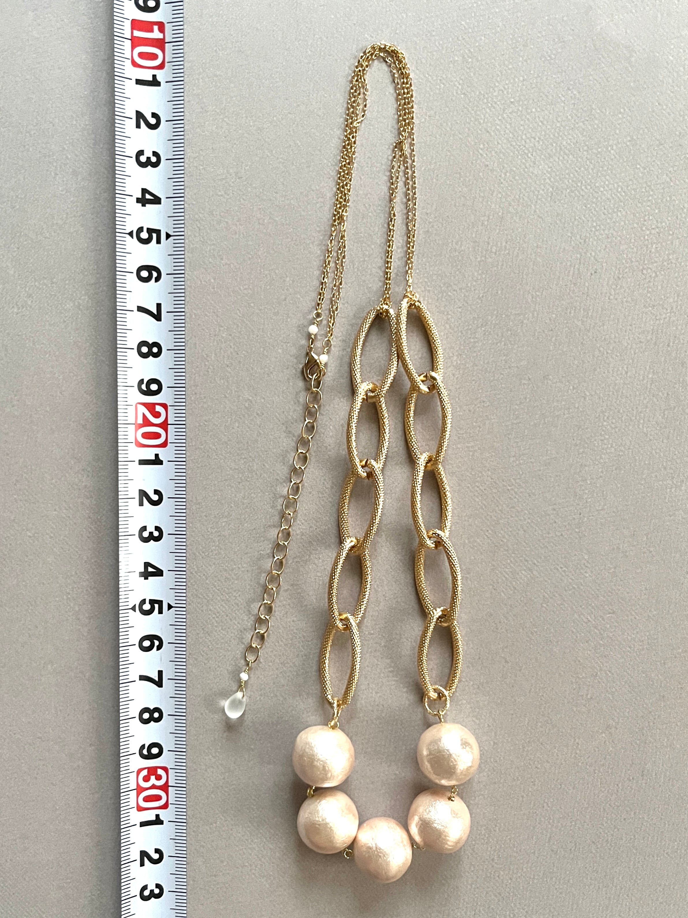 ボリュームのあるチェーンをつなげたロングネックレスです