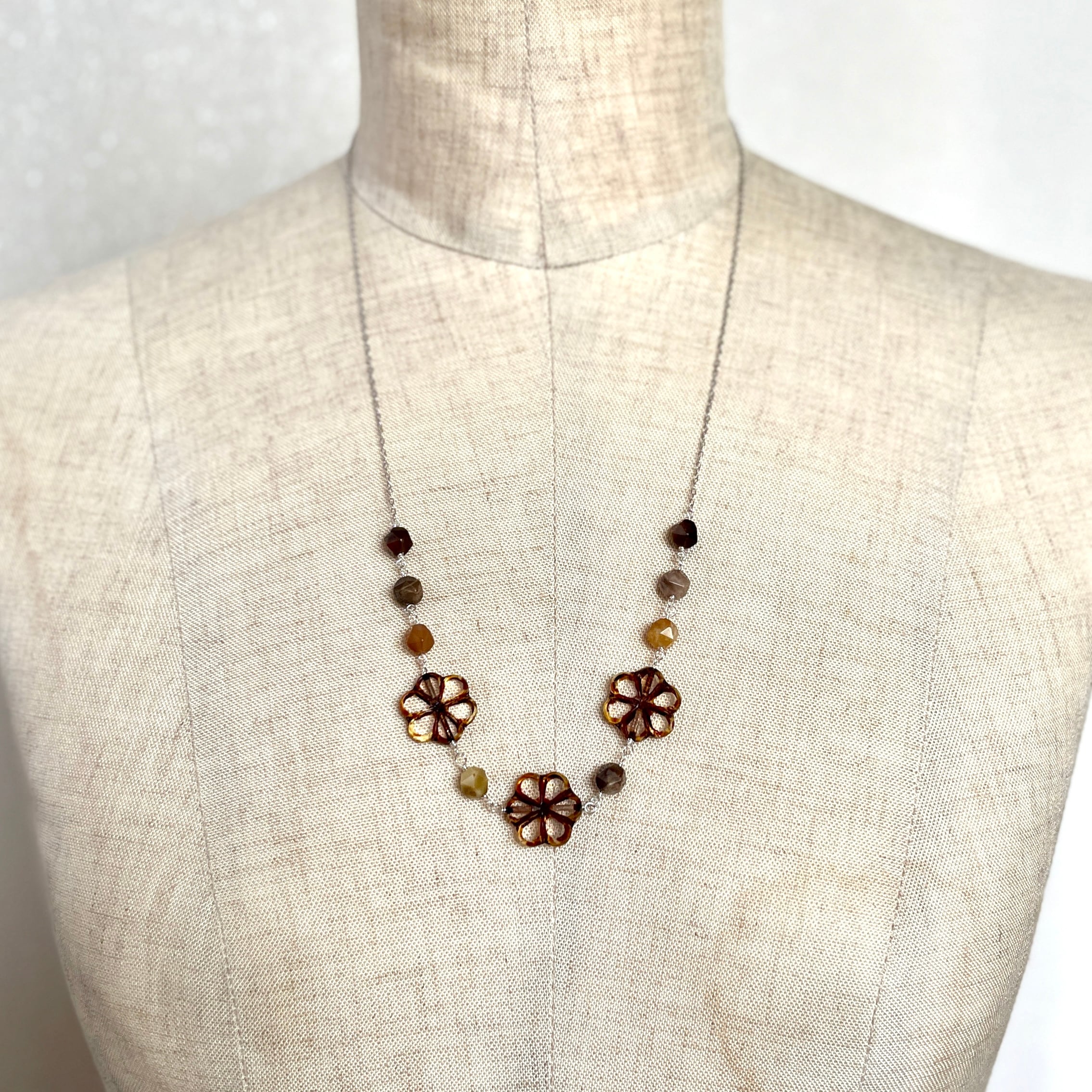 ロマンティックにも、さらりともつけられそうなネックレスです。