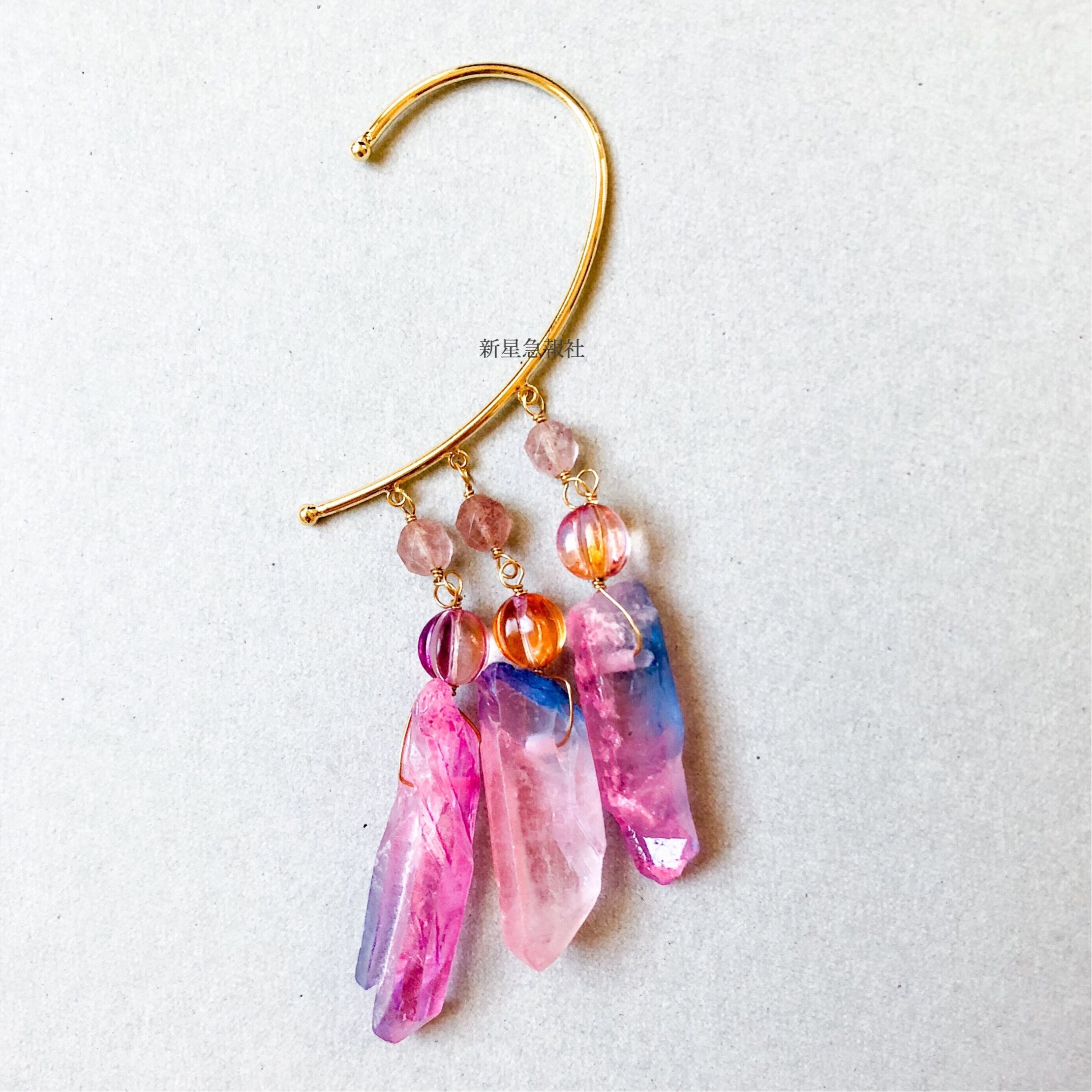 水晶と夕日のイヤーフック