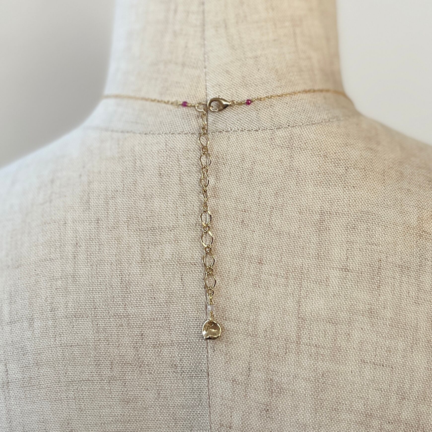 現在はカニカンを右手で持ち、背中のほうで留める形状です。